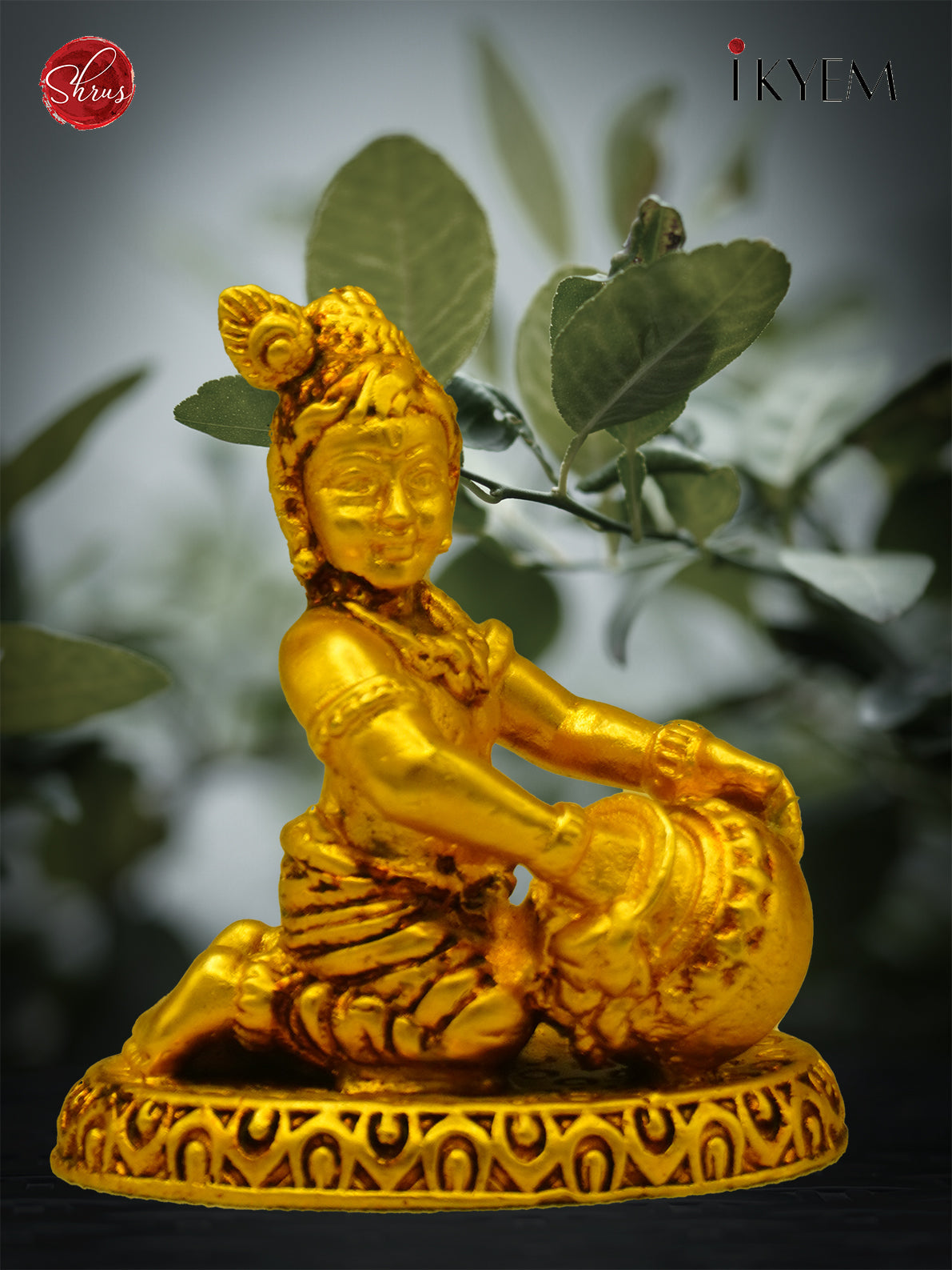 This antique matte gold finish Makan Krishna statue is a beautiful representation of the Hindu deity Lord Krishna, one of the most revered deities in Hinduism. The statue is made of high-quality metal and has intricate details and a matte gold finish. It is perfect for temple decorations or as a gift for loved ones. The statue is designed to bring blessings and prosperity to the owner. Its antique matte gold finish gives it an elegant and traditional look, It's a perfect addition to any Hindu home. This statue is a great way to honor the deity and bring positive energy into your life.