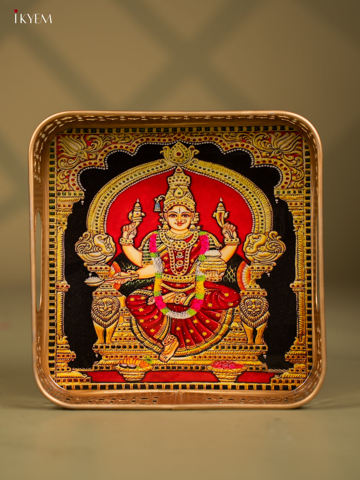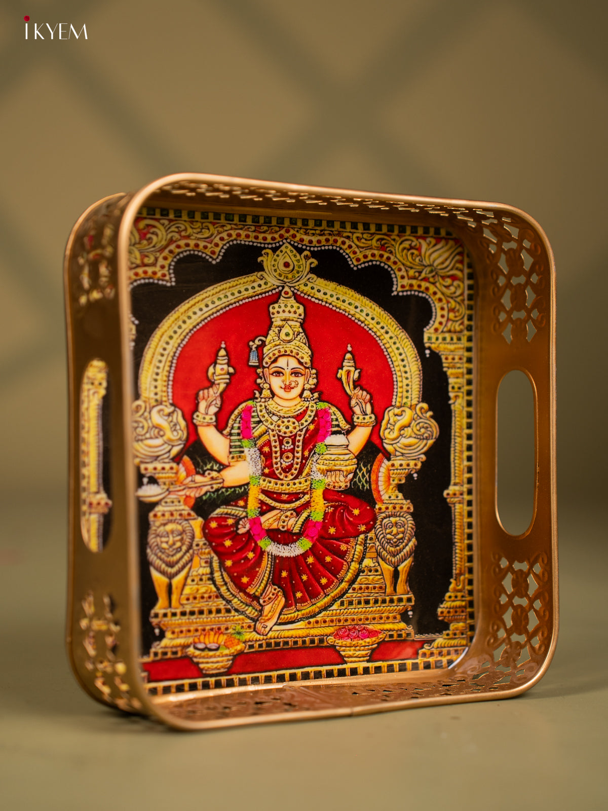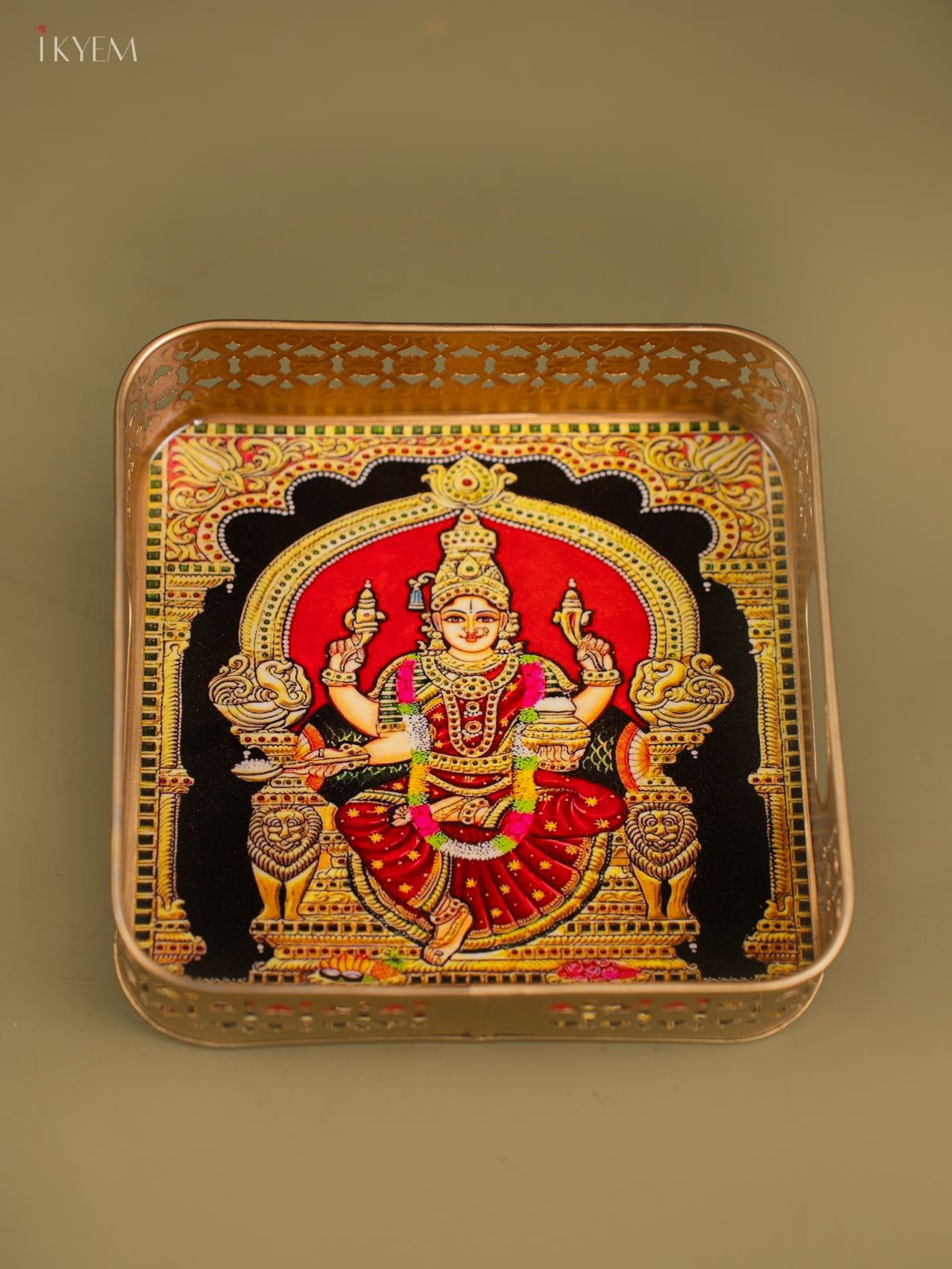 Goddess Amman Printed Square Metal tray - 8 Inch -KF24214