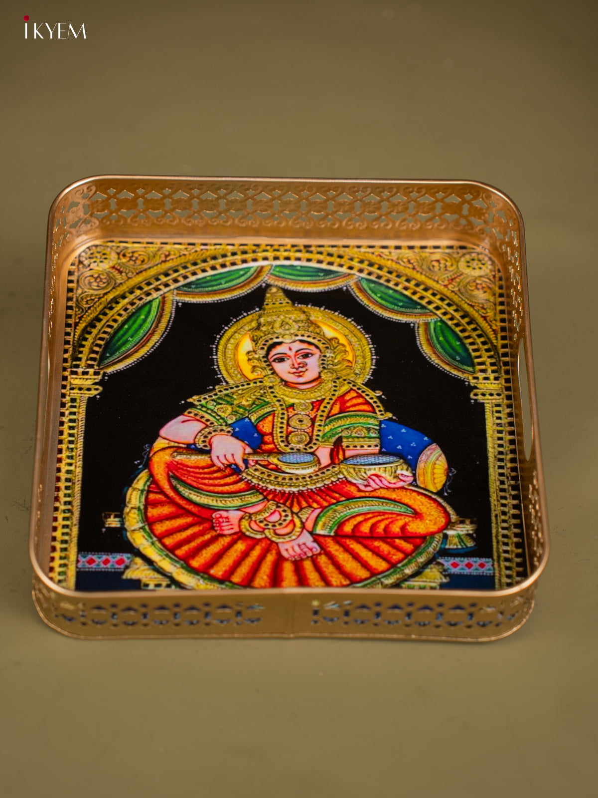 Goddess Annapoorani Printed Square Metal Tray - KF25154