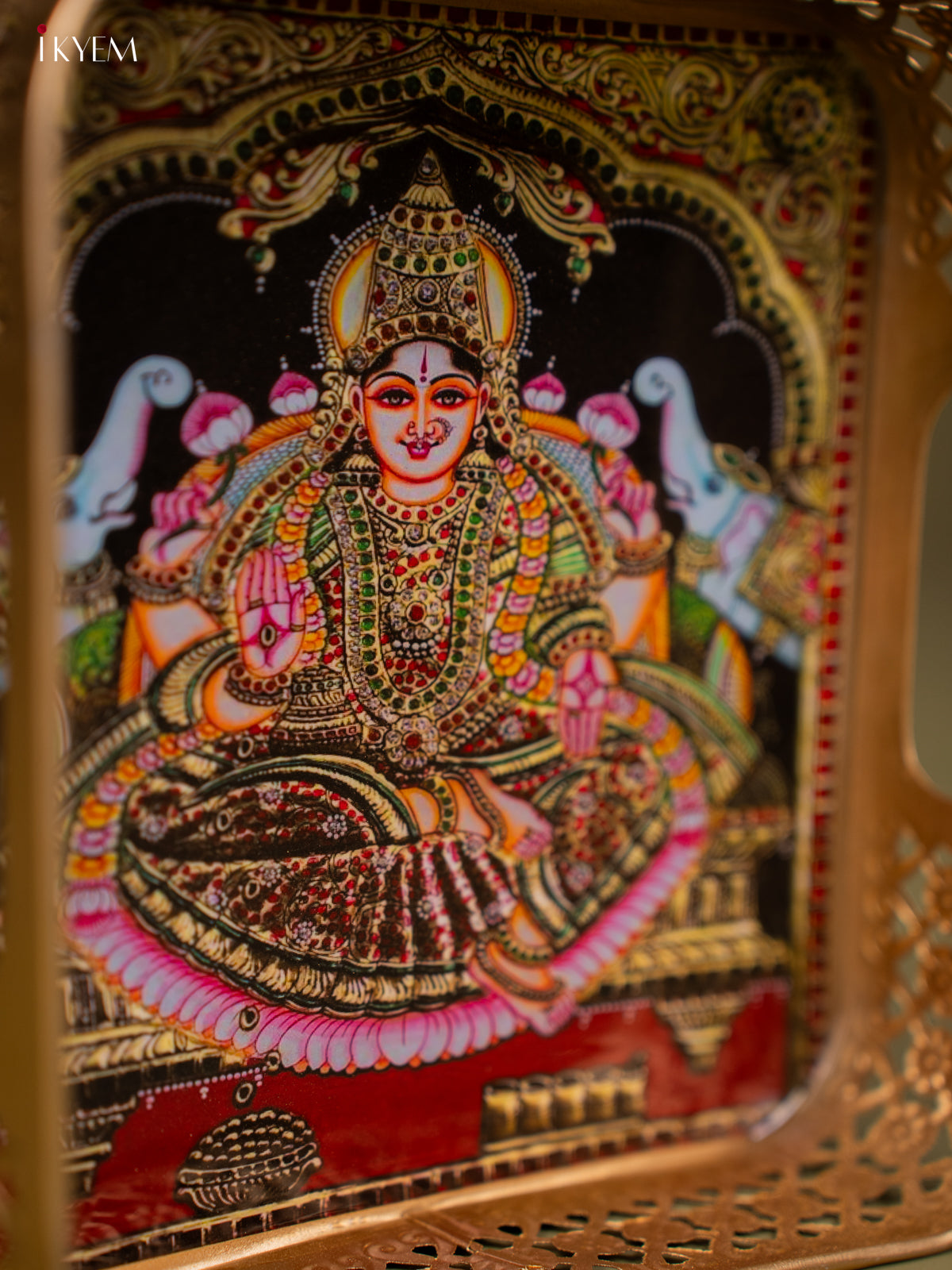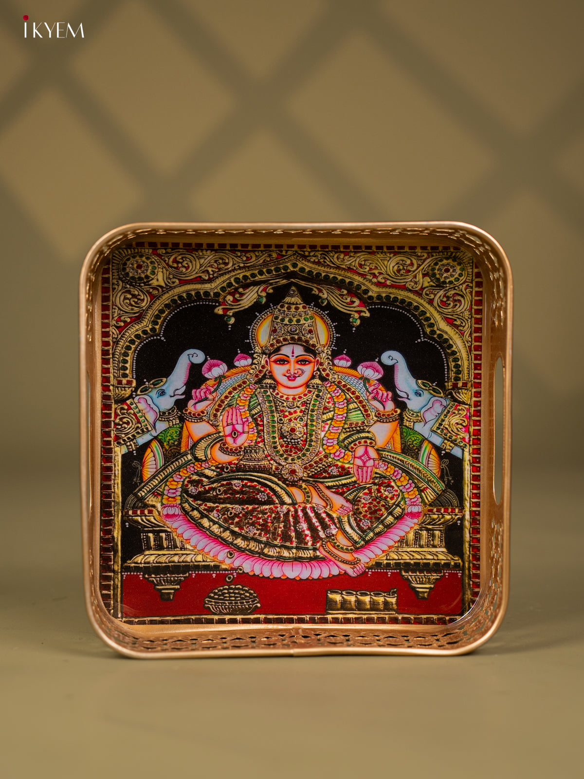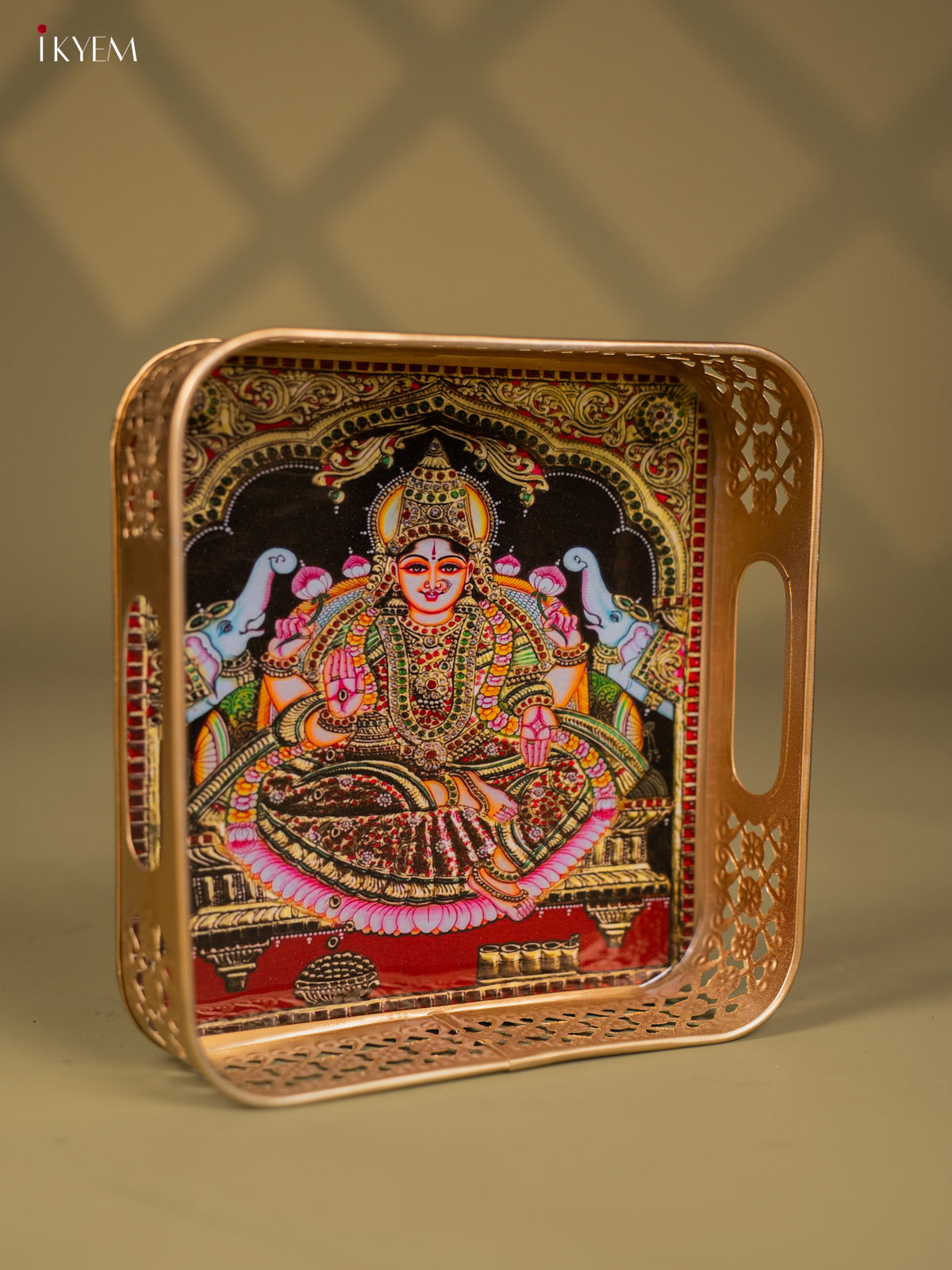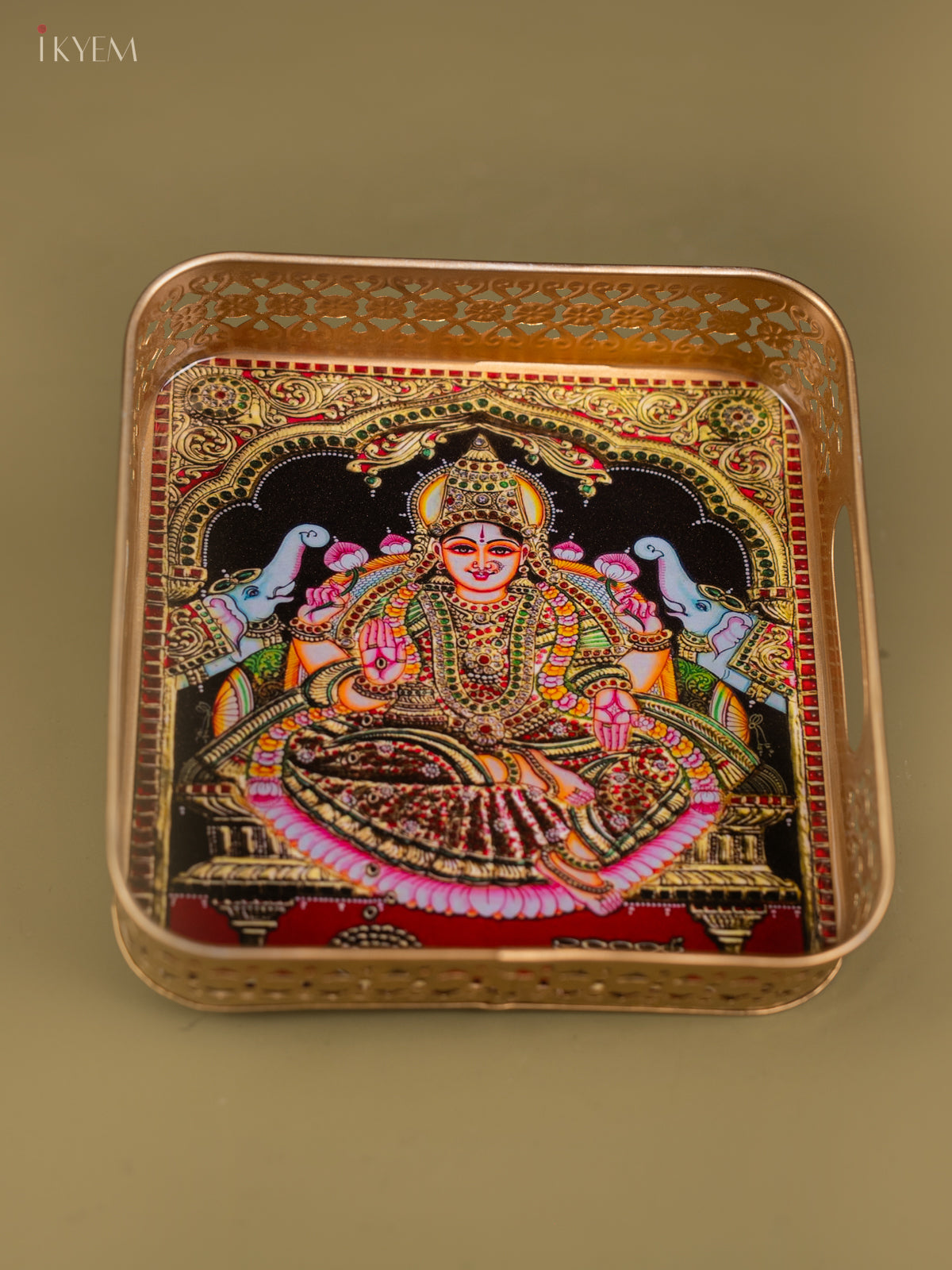 Goddess Gajalakshmi Printed Square Metal Tray with Twin Elephants - KF24204