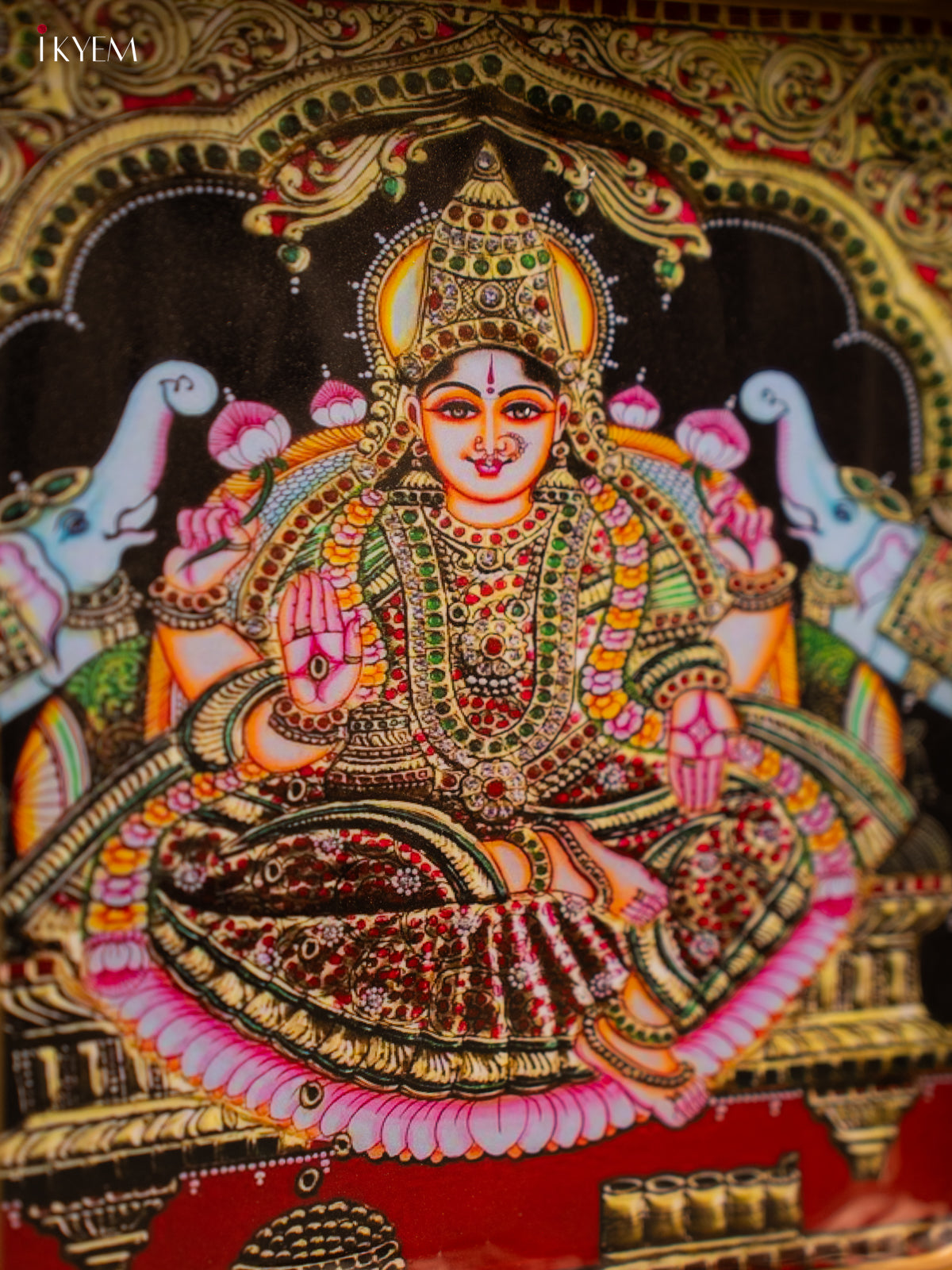 - This 10-inch square metal tray features godess Gajalakshmi & 2 elephants, perfect for pooja ceremonies and religious offerings.