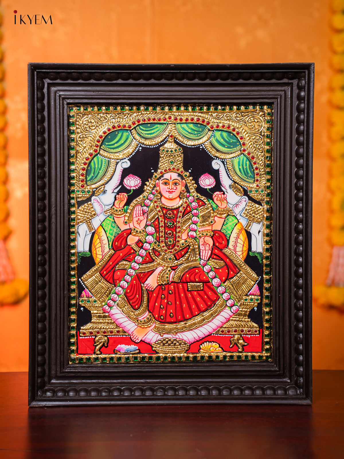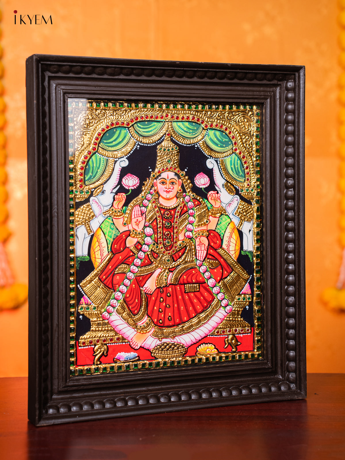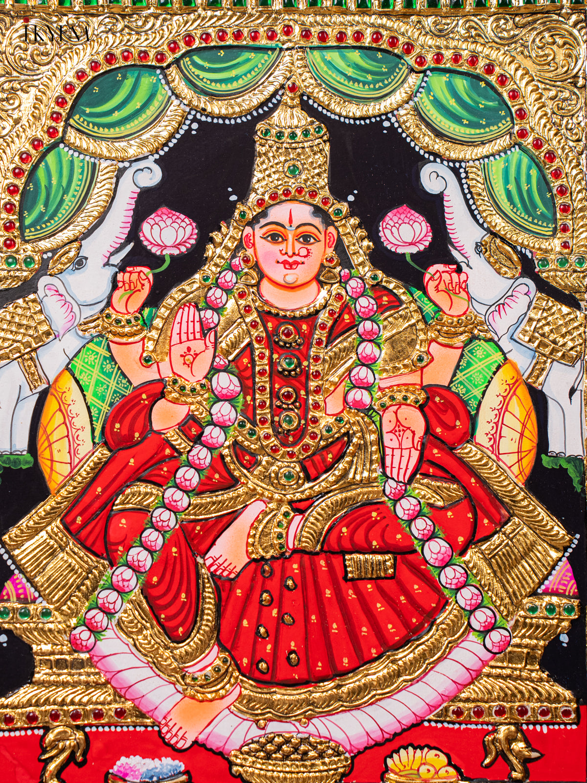 - A Divine Goddess Gajalakshmi Thanjavur Painting (18x15 Inch) for your pooja room, radiating divine energy and exquisite artistry.