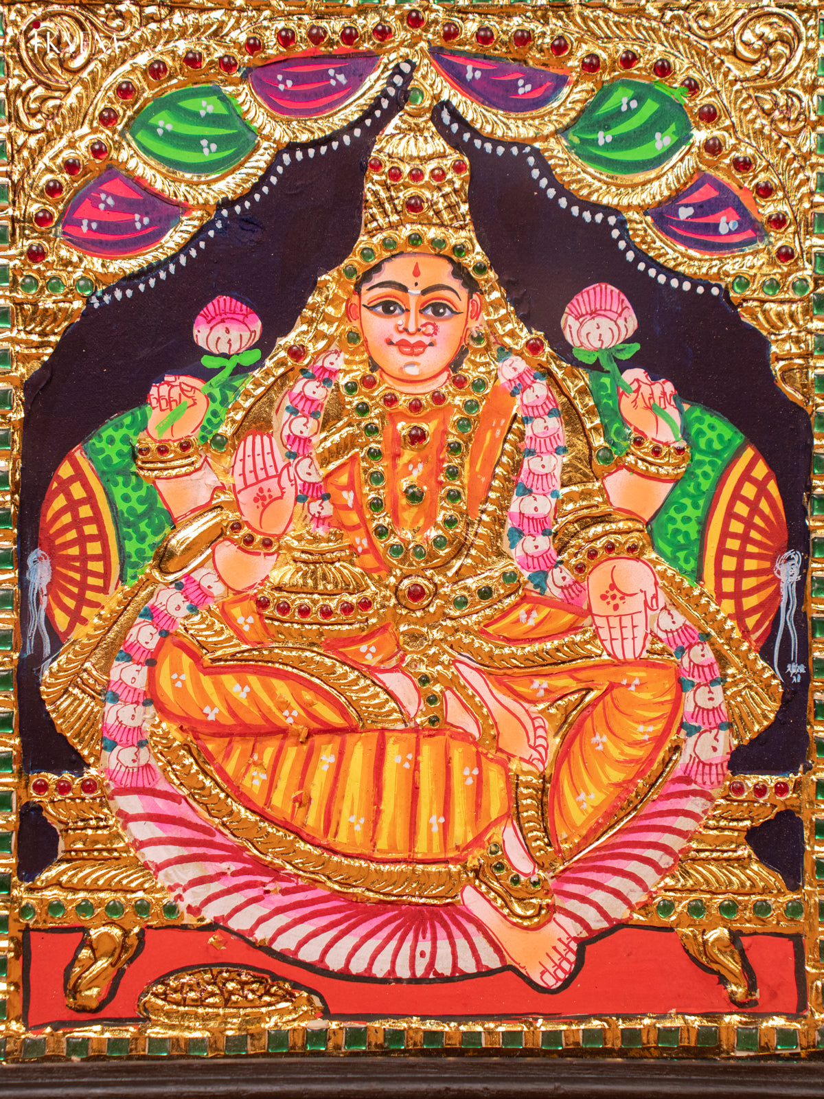 - This premium Gaja Lakshmi Tanjore Painting (13 x11) brings divine energy to your pooja room.