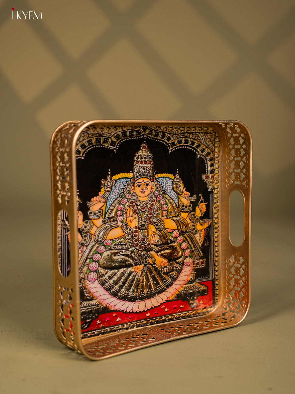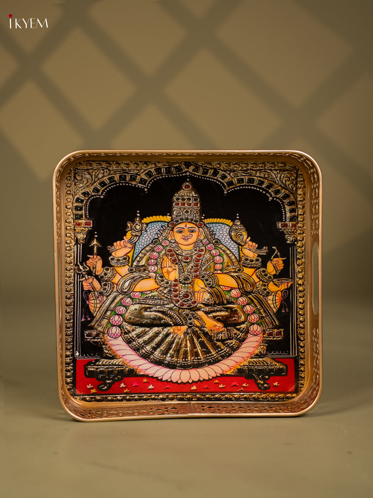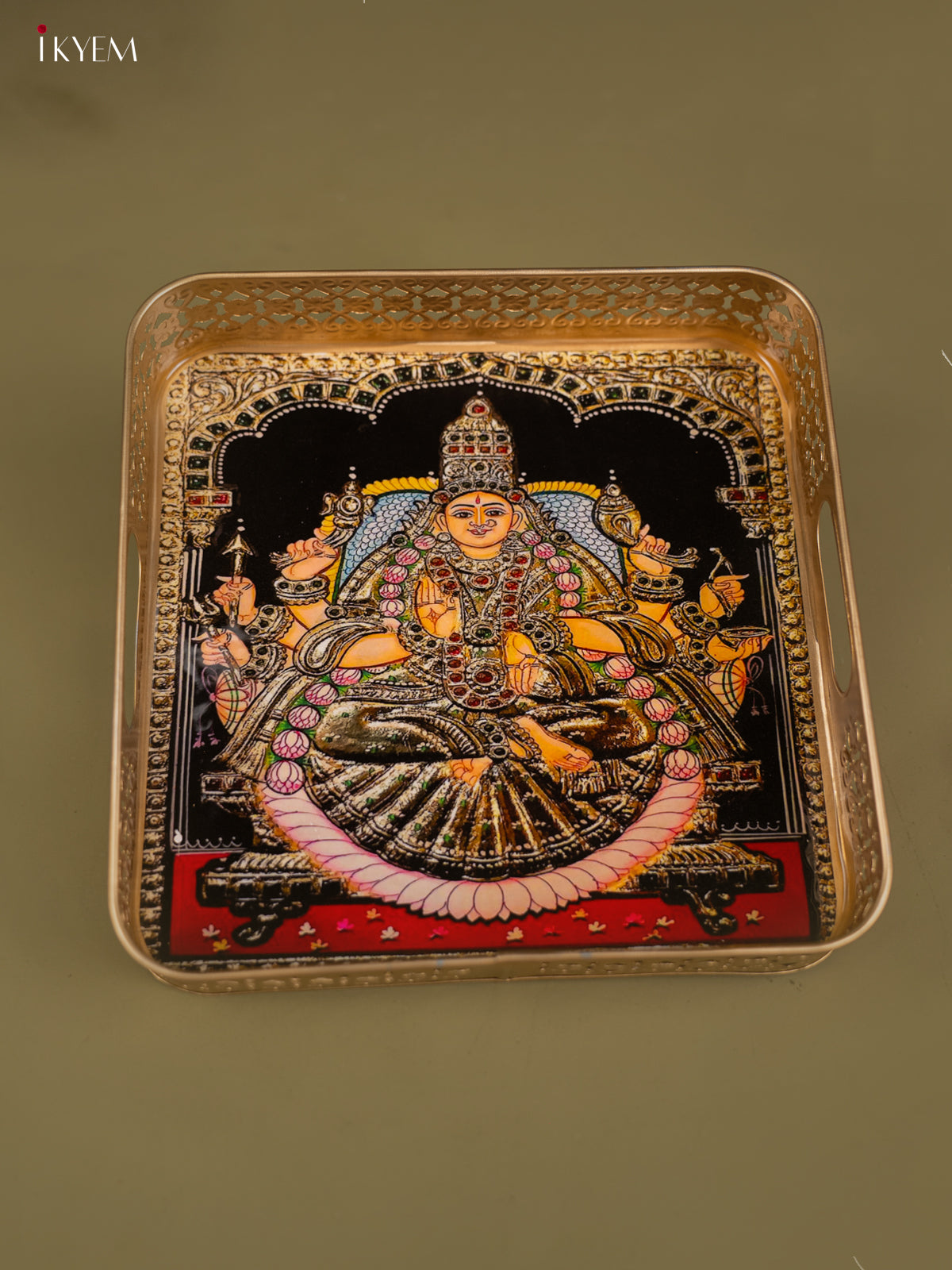 Divine Goddess Lakshmi Printed Square Metal Trays - KF25155