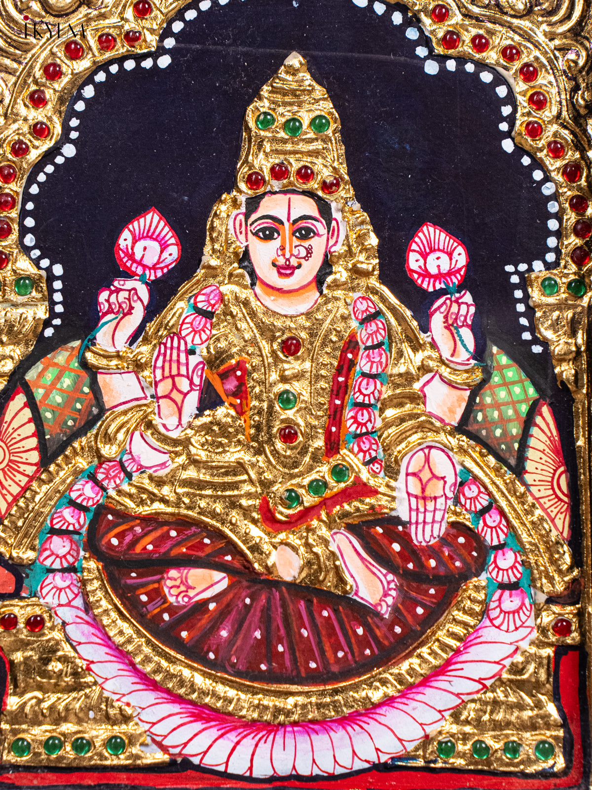 - This 11 x 9-inch Lakshmi Tanjore painting features traditional design and vibrant colours, making it an ideal centrepiece for your pooja room.