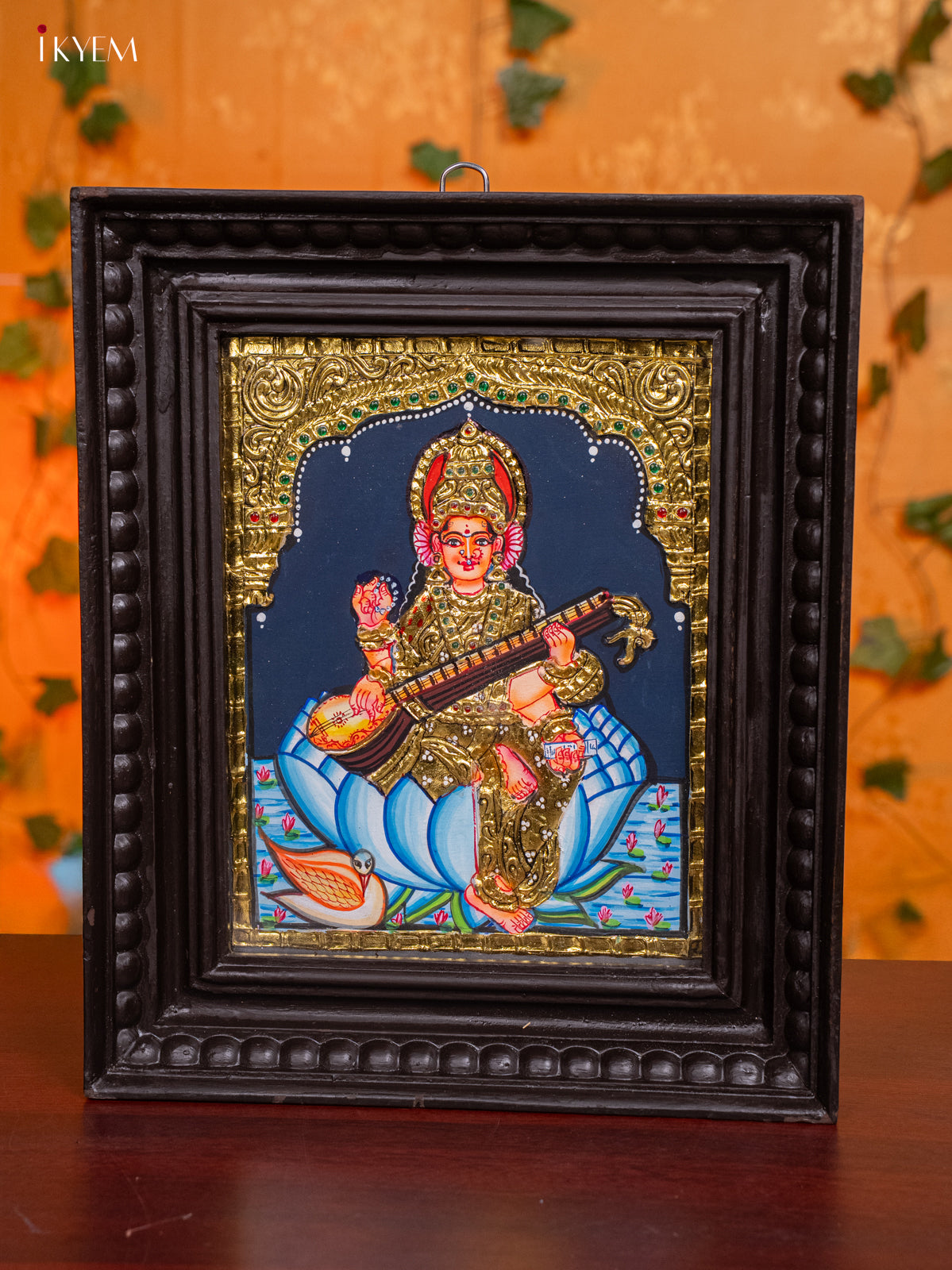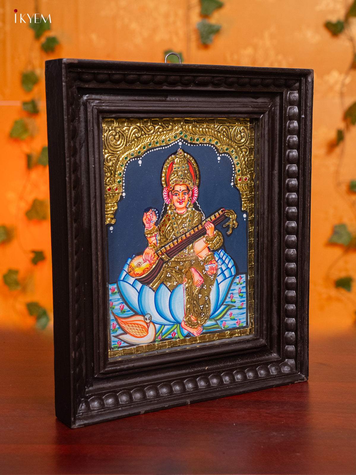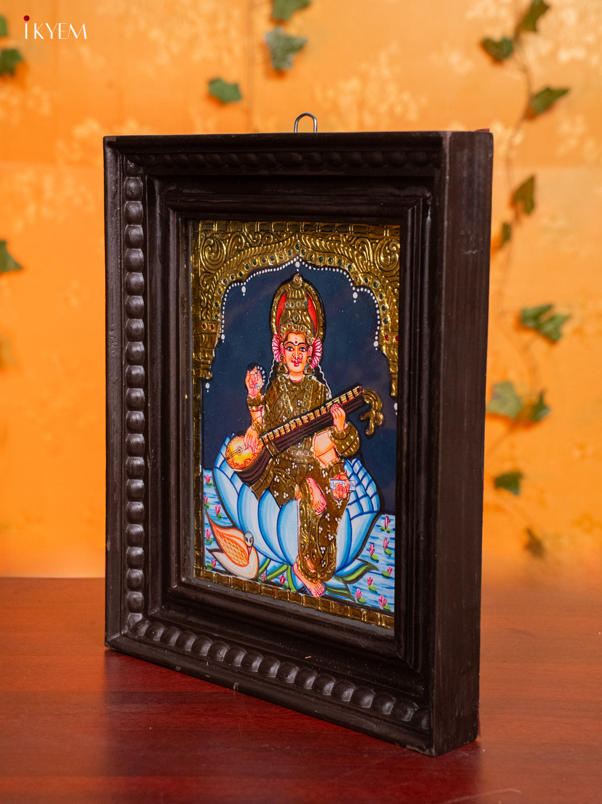 Divine Thanjavur painting Of Goddess Saraswathi In Teak Frame (13x11 Inch) - KH26159