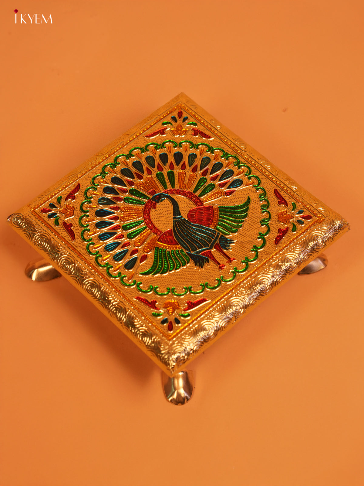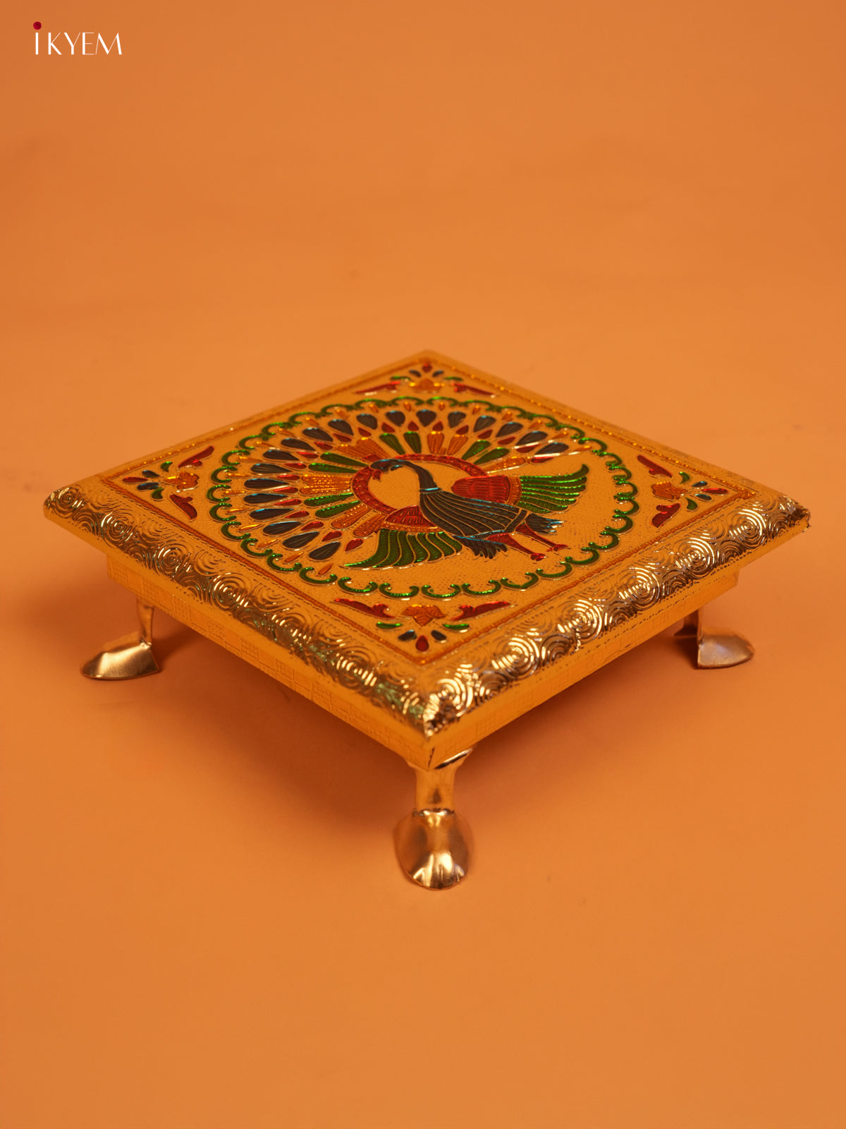 Golden Wooden Bajot With Meenakari Peacock Design - KL31126