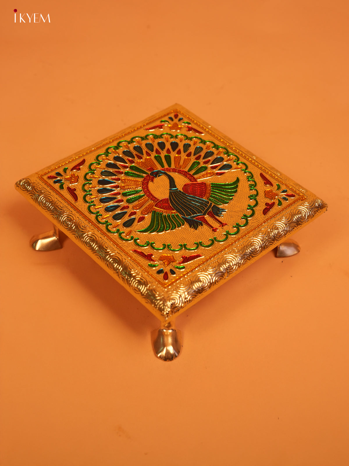- This traditional Meenakari Wooden Chowki features a beautiful peacock design, making it perfect for pooja ceremonies and housewarming decorations.