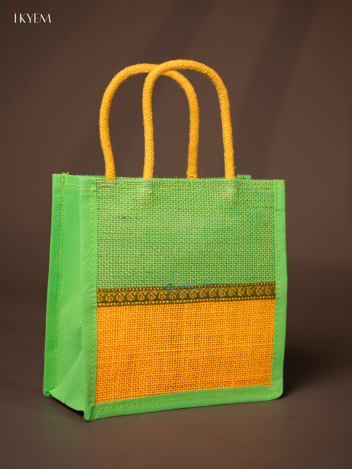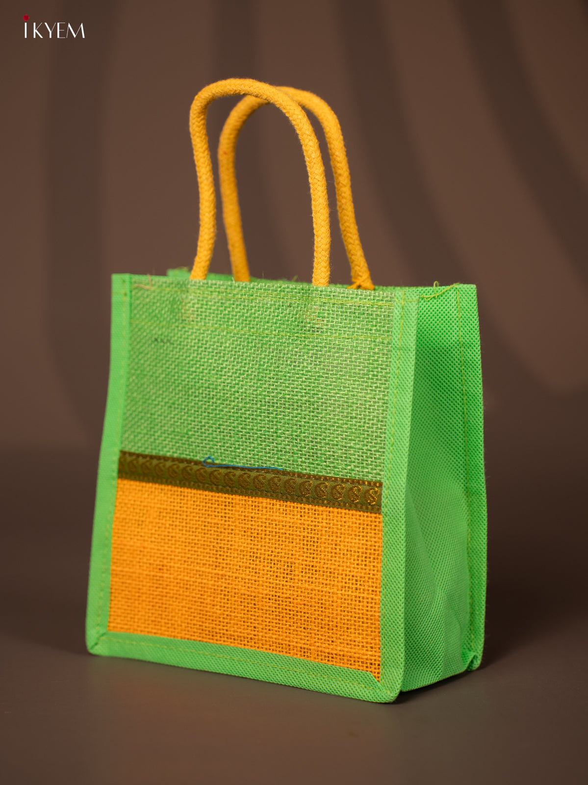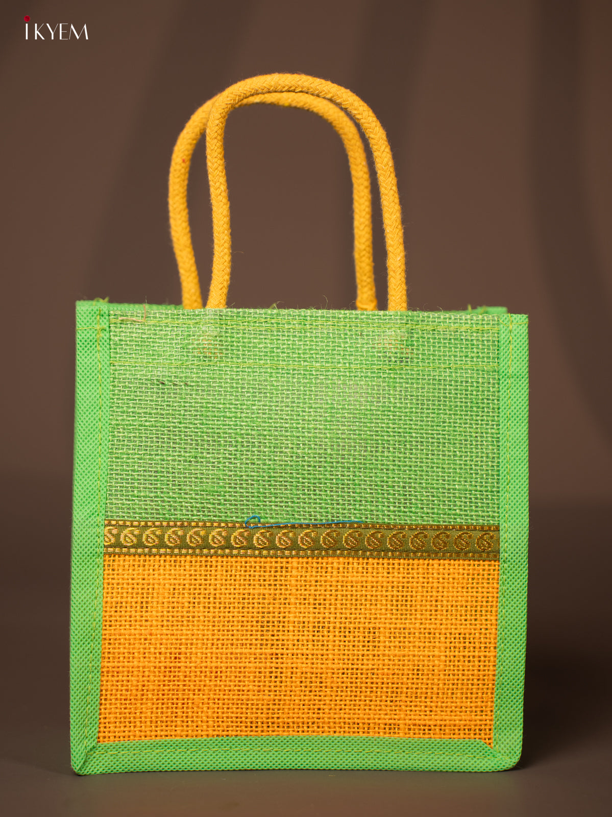 Elegant Green & Yellow Jute Bag with Golden Border - KG22115