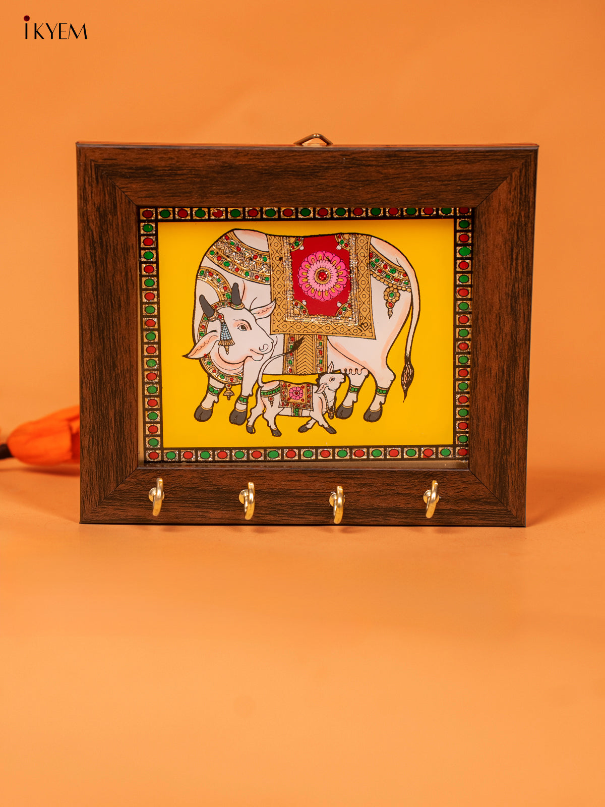 - Expertly crafted with reverse glass painting 5X6 Inches Key hanger features a vibrant yellow Cow & Calf design.