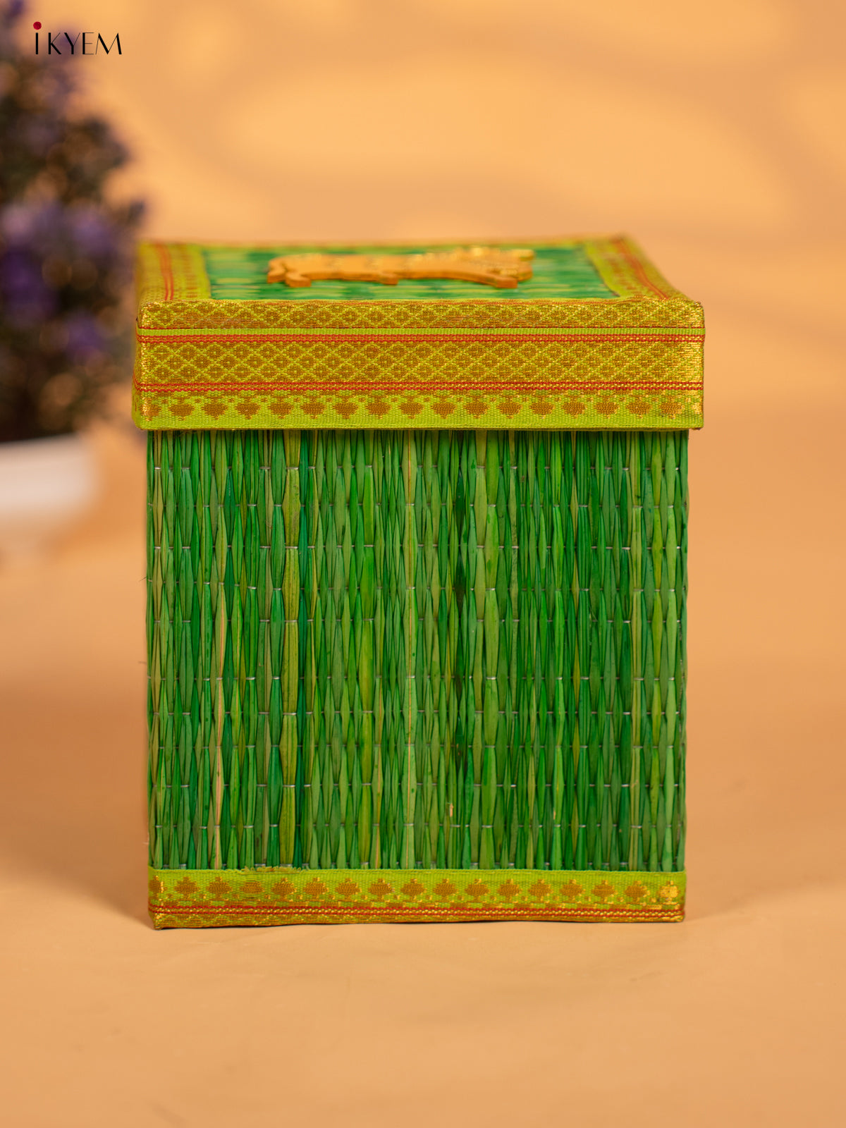 Green Korai Gift Box with Net Potli & Cow Motif - KB17149