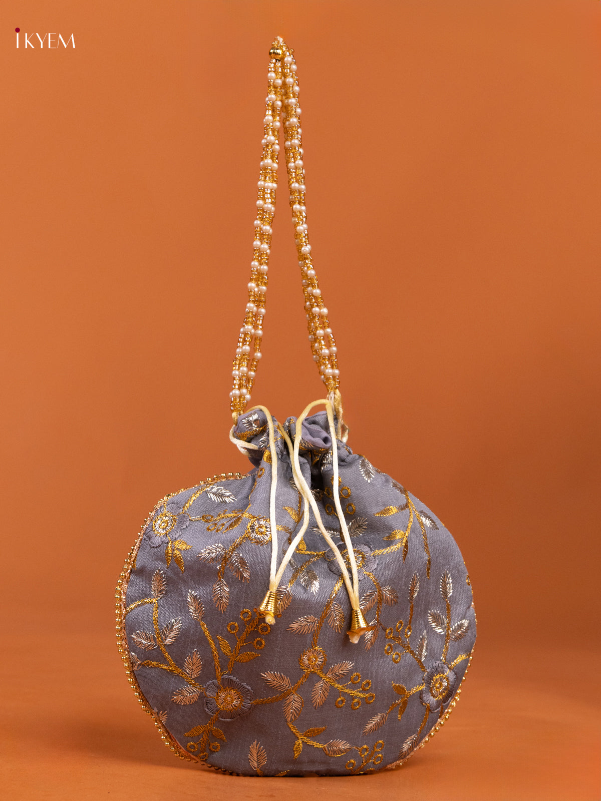 Grey Potli Bags With Embroidered Floral Design - KD26503