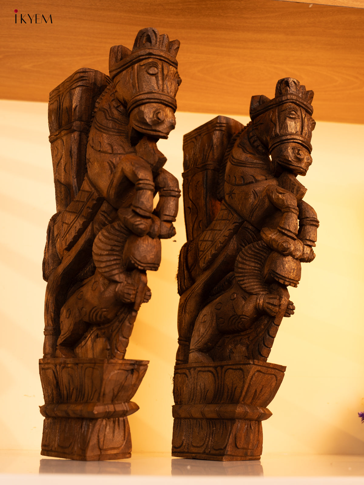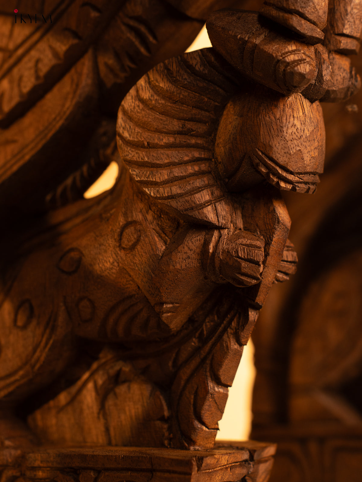 - It is a coveted choice for those curating rare carved wooden wall brackets or styling spaces that echo timeless Indian artistry. Add it as a standalone piece or pair it with temple-style decor to create an aura of grace and tradition.