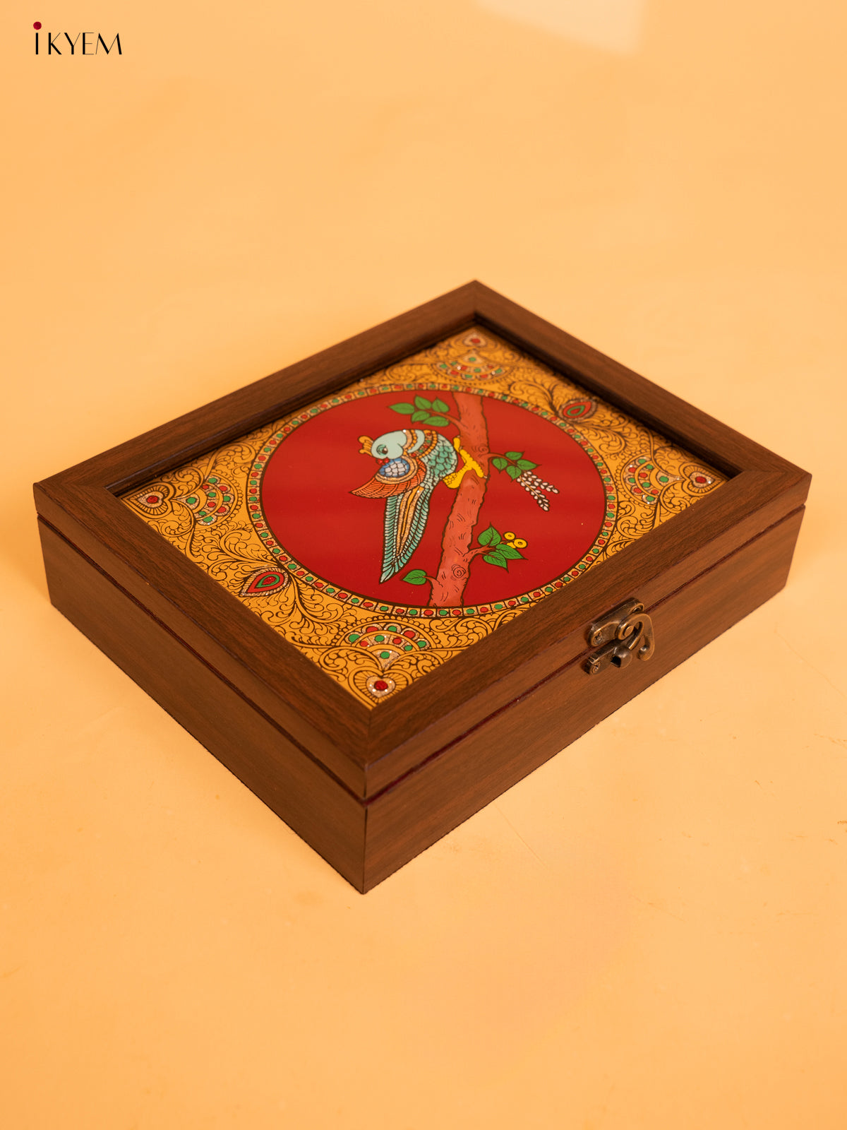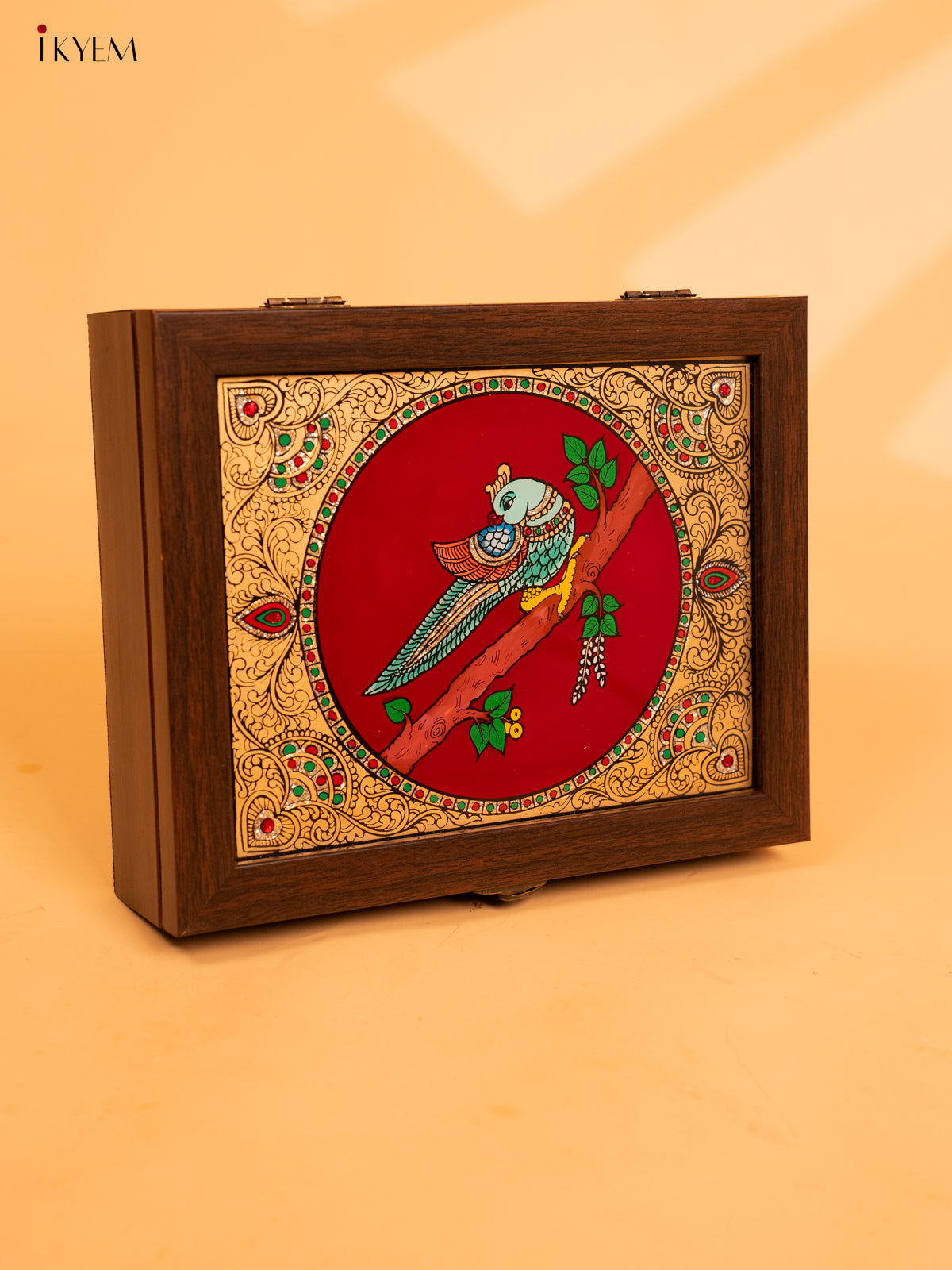 Reverse Glass Painted Jewel box (9x7) - Parrot - KA07131
