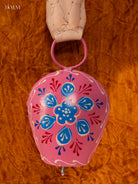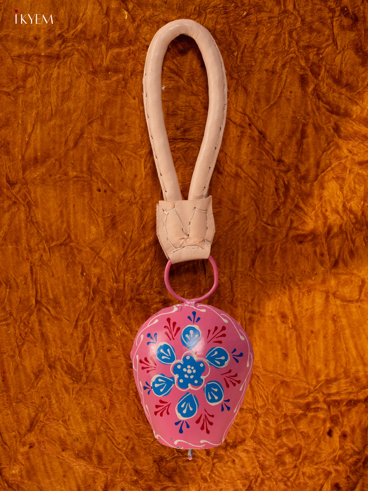 Hand Painted Cow Bell with Leather Handle - Small - Pink with Blue - KA11118