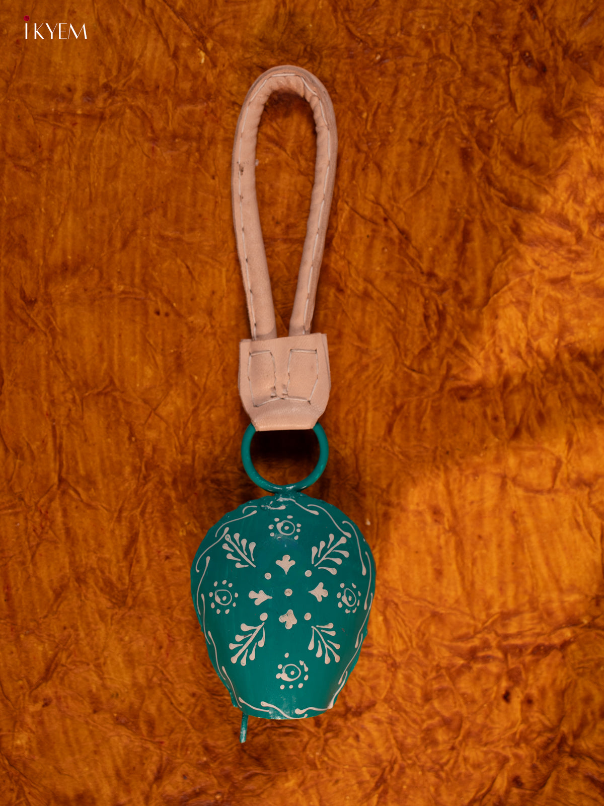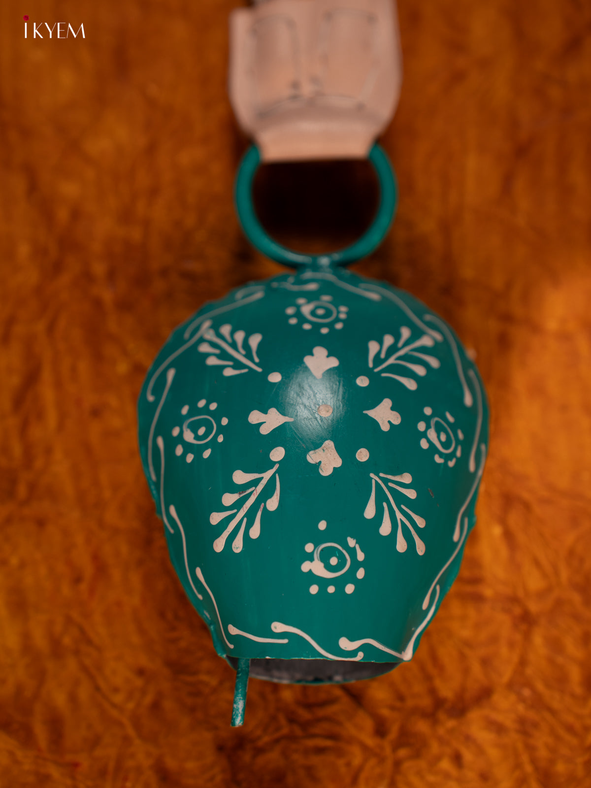 Hand Painted Cow Bell with Leather Handle - Small - Mint Green - KA11123