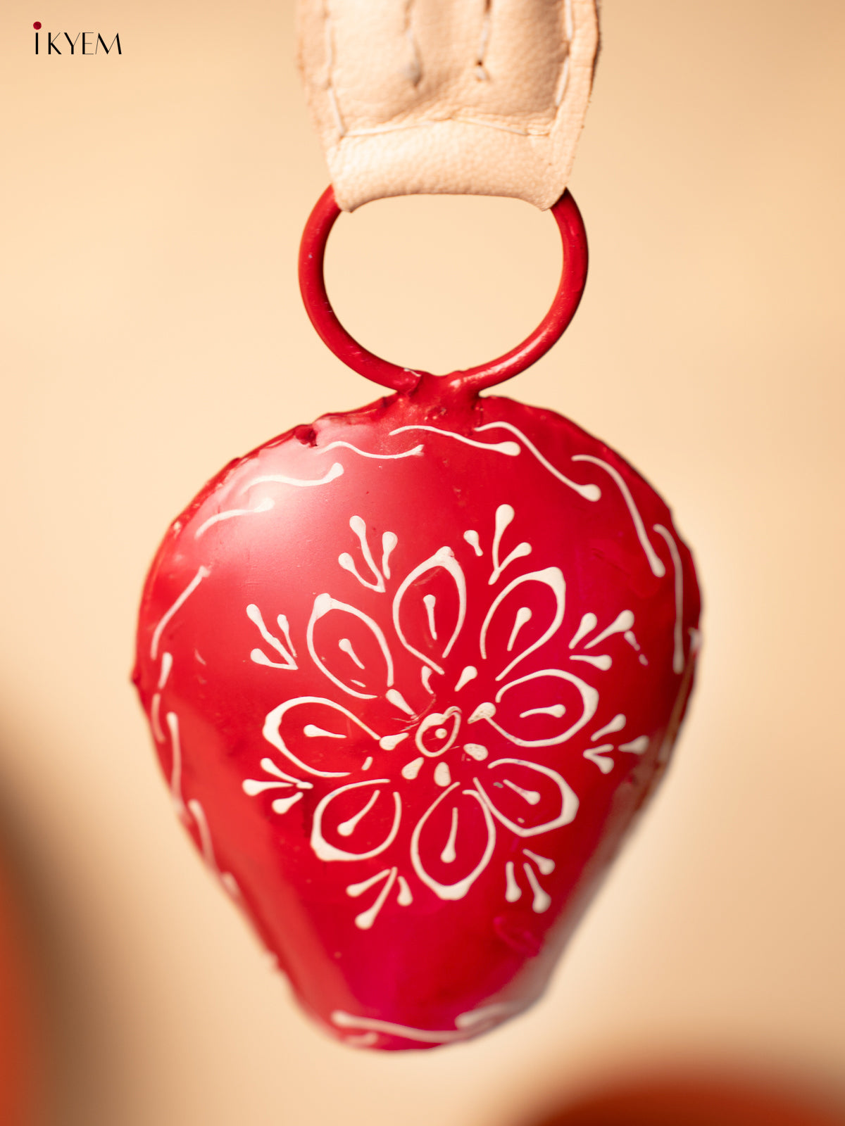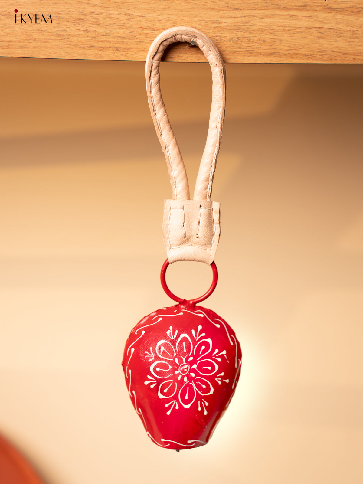 Hand Painted Cow Bell with Leather Handle - Small - Red - KA11128