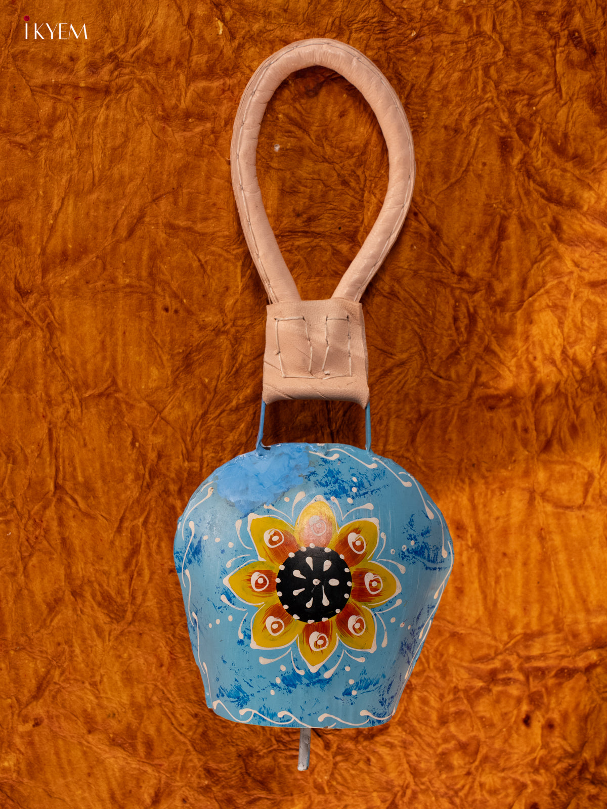Hand Painted Cow Bell with Leather Handle - Medium - Sky Blue - KA11133