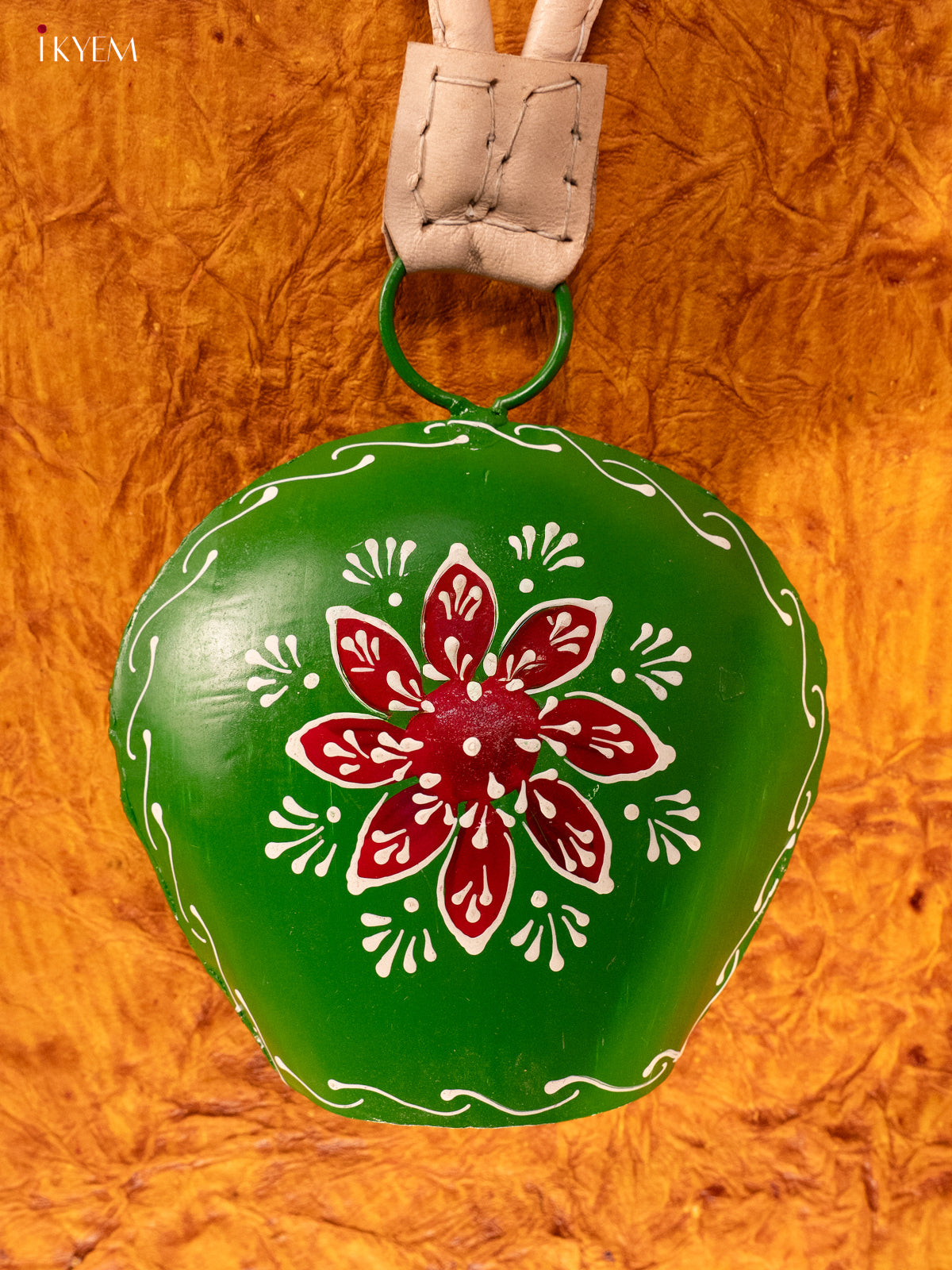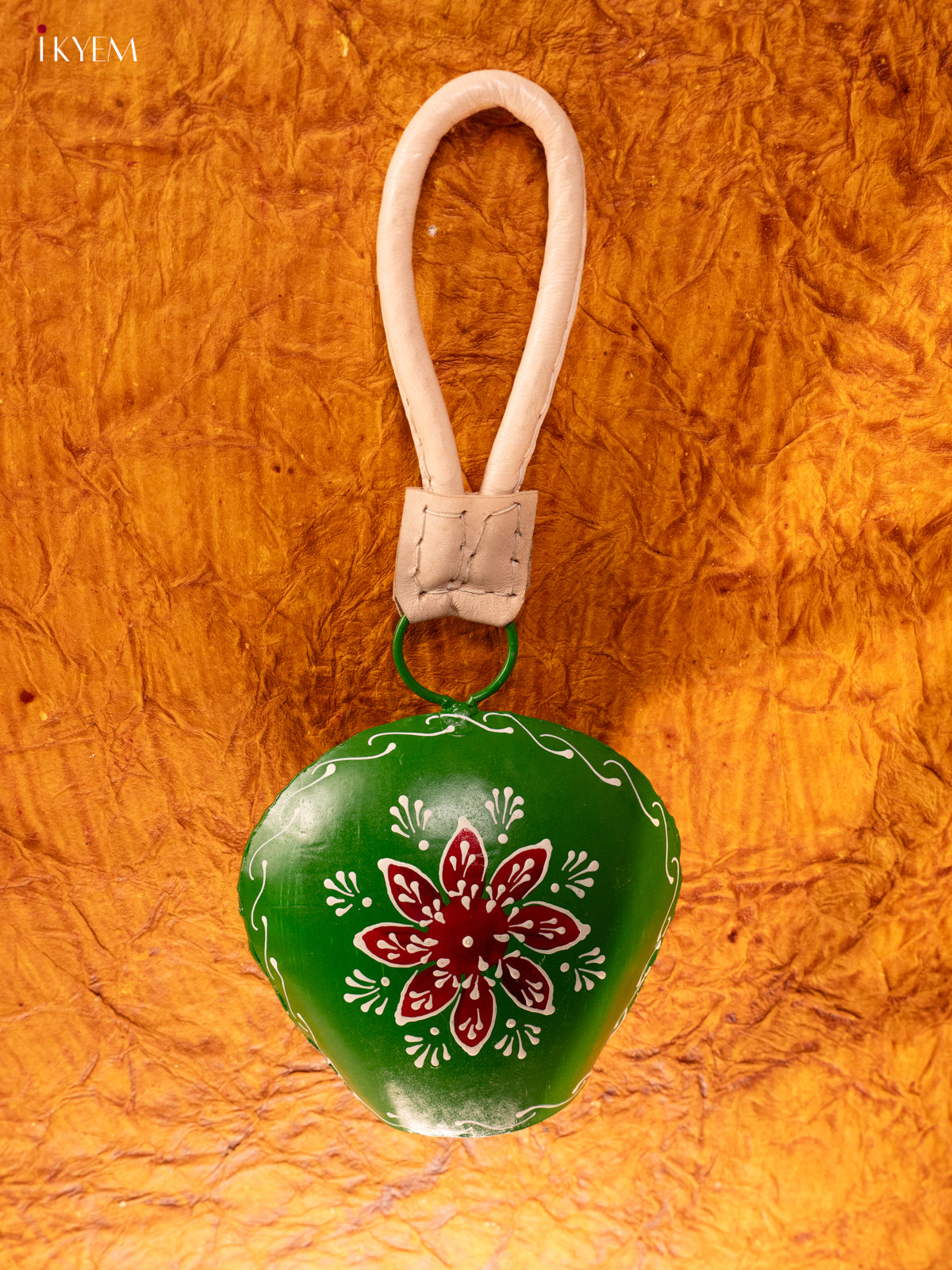 Hand Painted Cow Bell with Leather Handle - Big - Parrot Green - KA11145