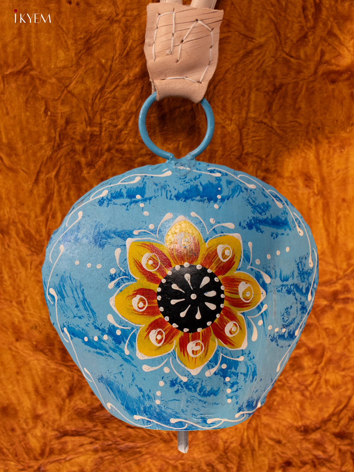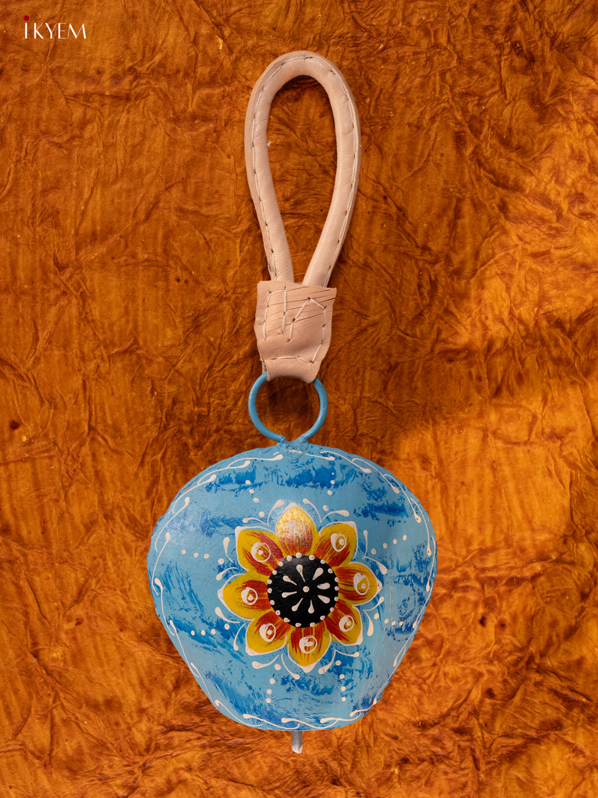Hand Painted Cow Bell with Leather Handle - Big - Sky Blue - KA11146