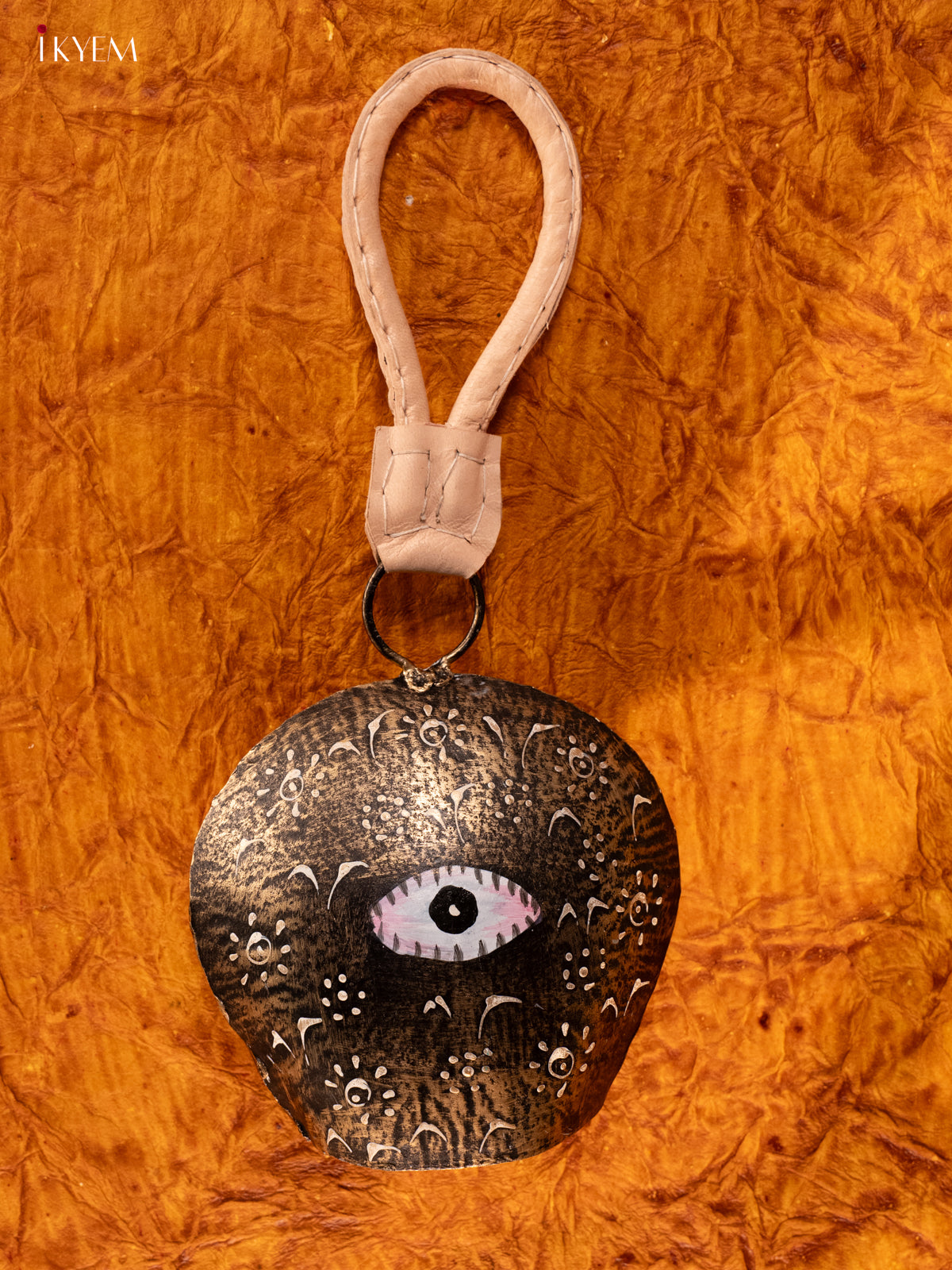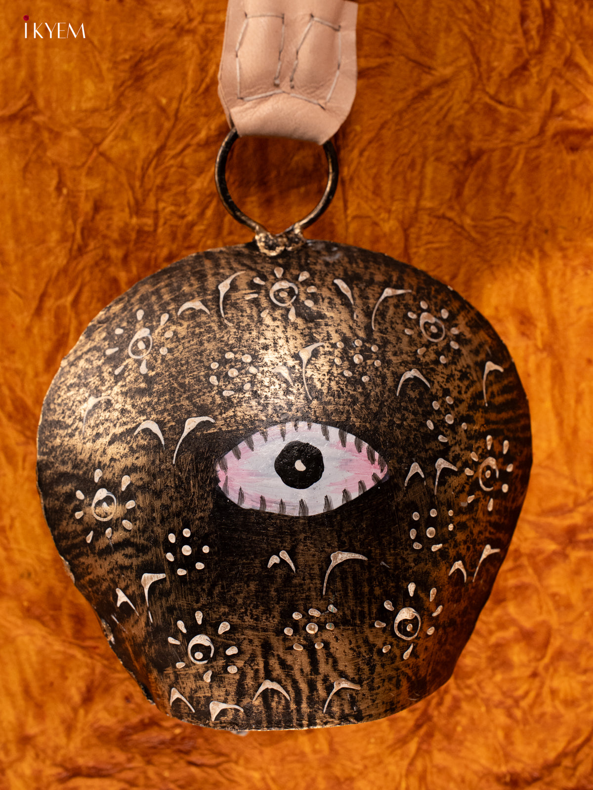 Hand Painted Cow Bell with Leather Handle - Big - Black with Gold - KA11152