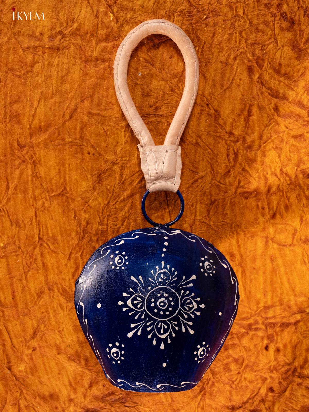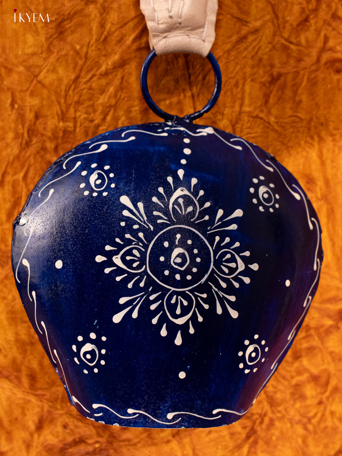 Hand Painted Cow Bell with Leather Handle - Big - Dark Blue - KA11153