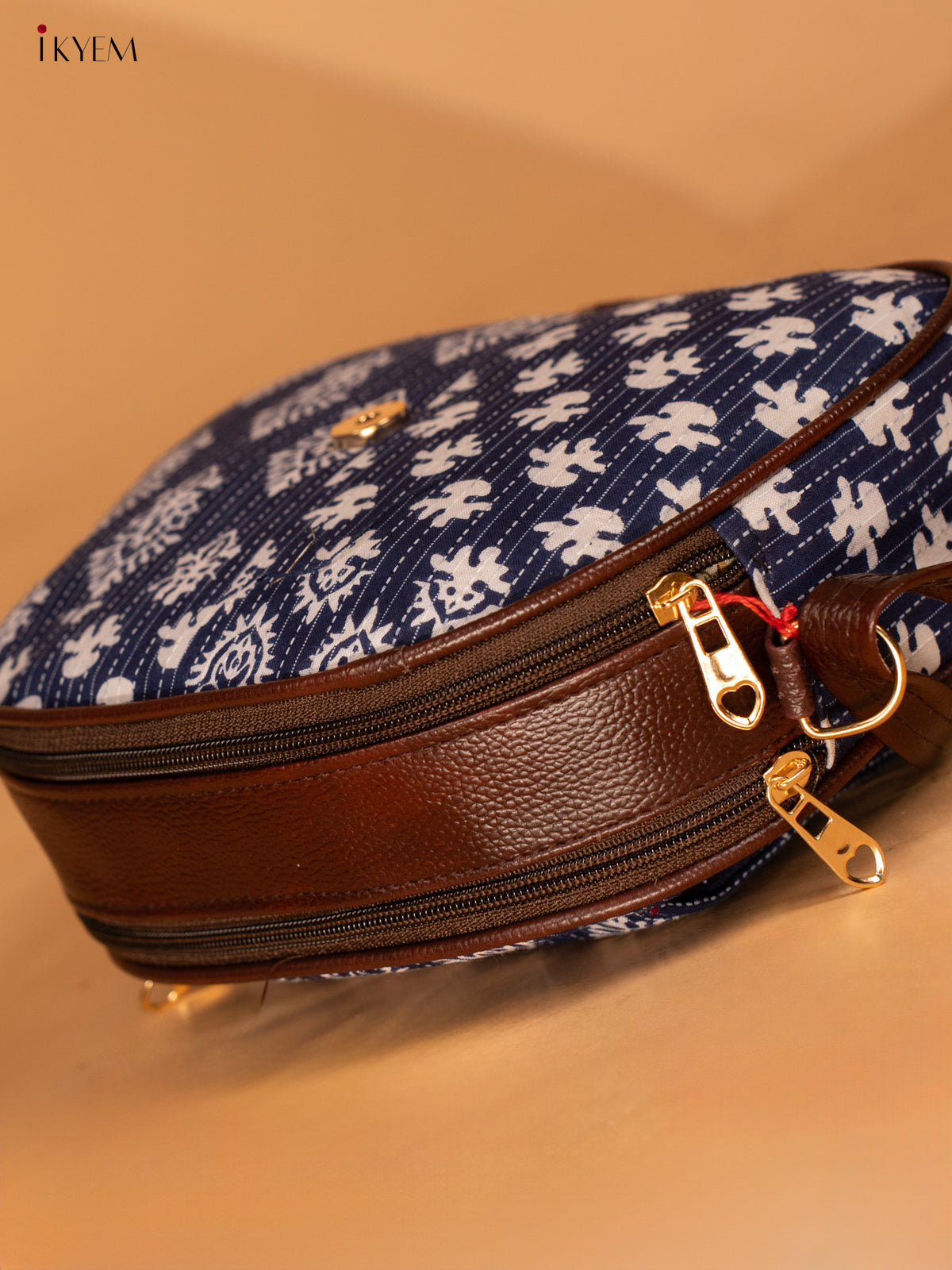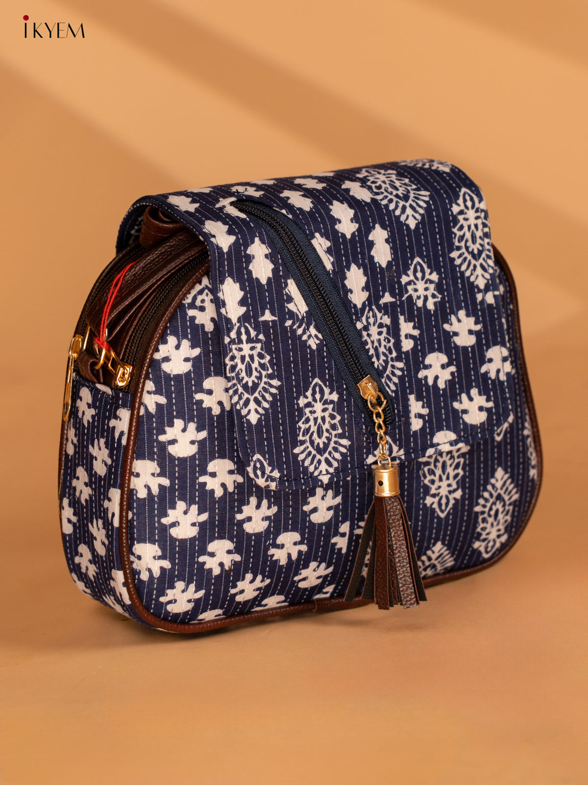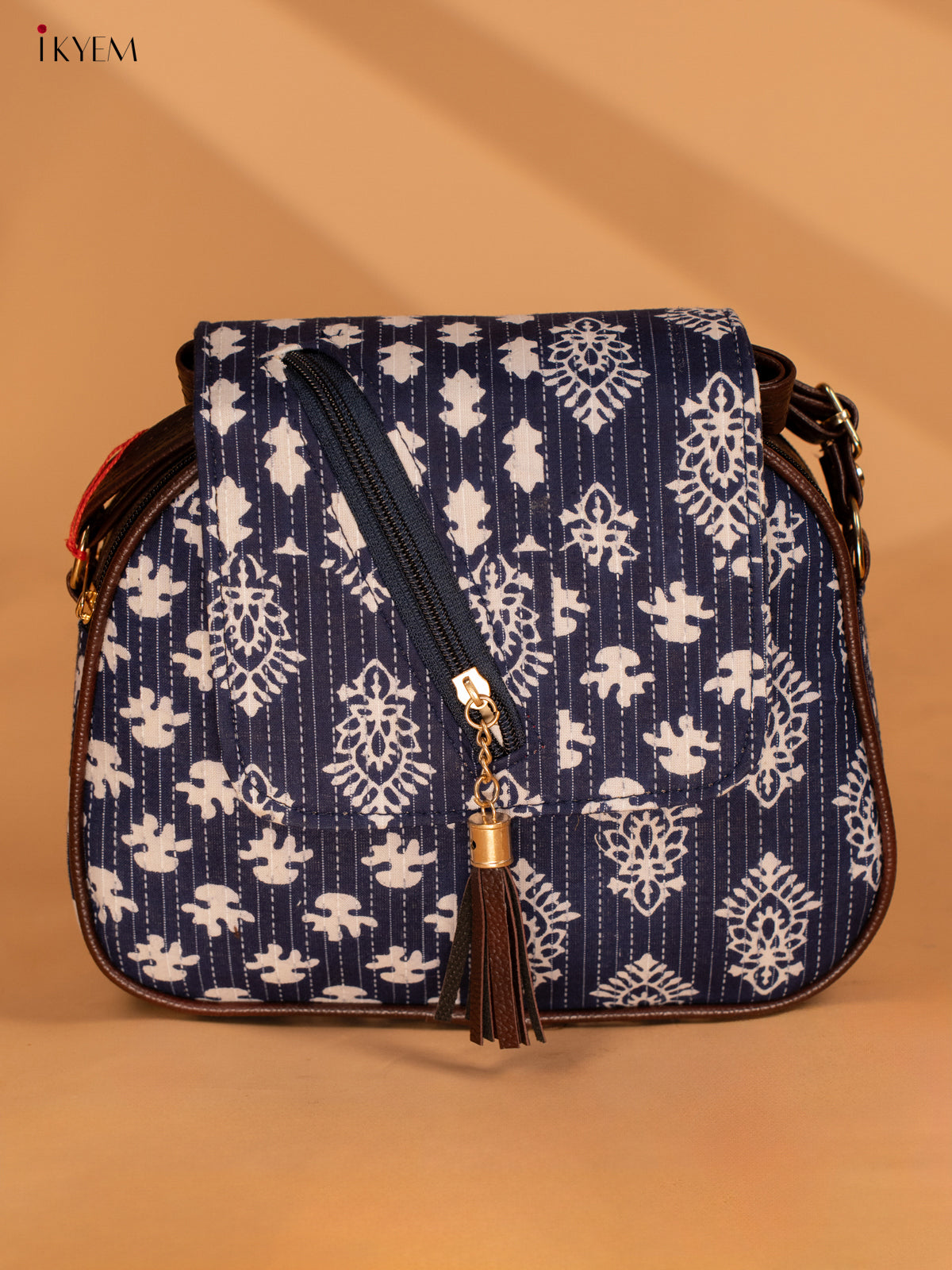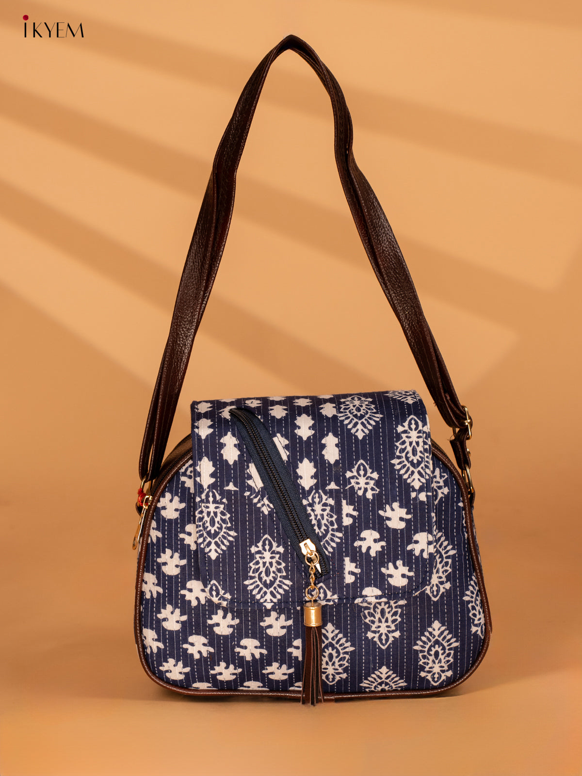 - This cotton printed sling bag in indigo is perfect for on-the-go use.