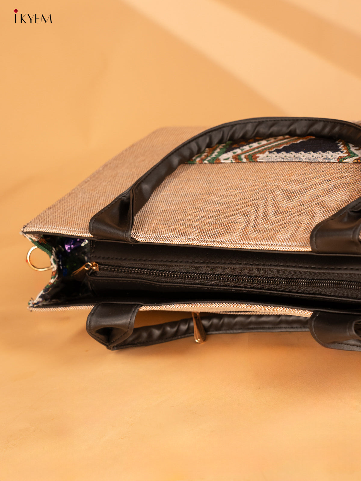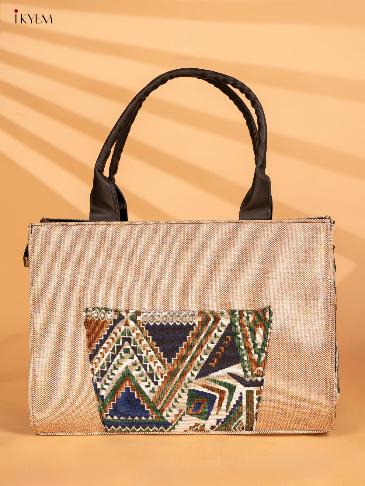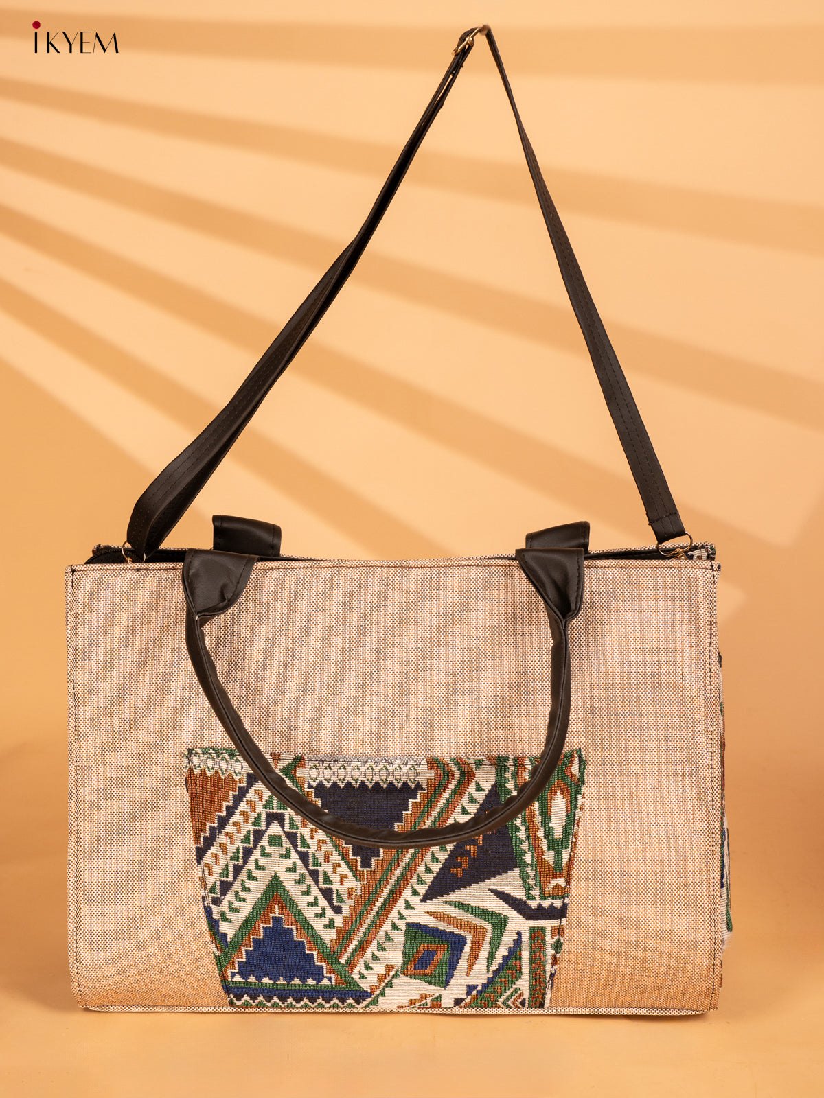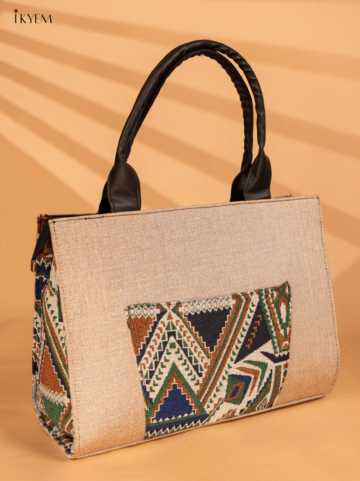 Jacquard Handbag with Leather Sling - Sandal - KA18142