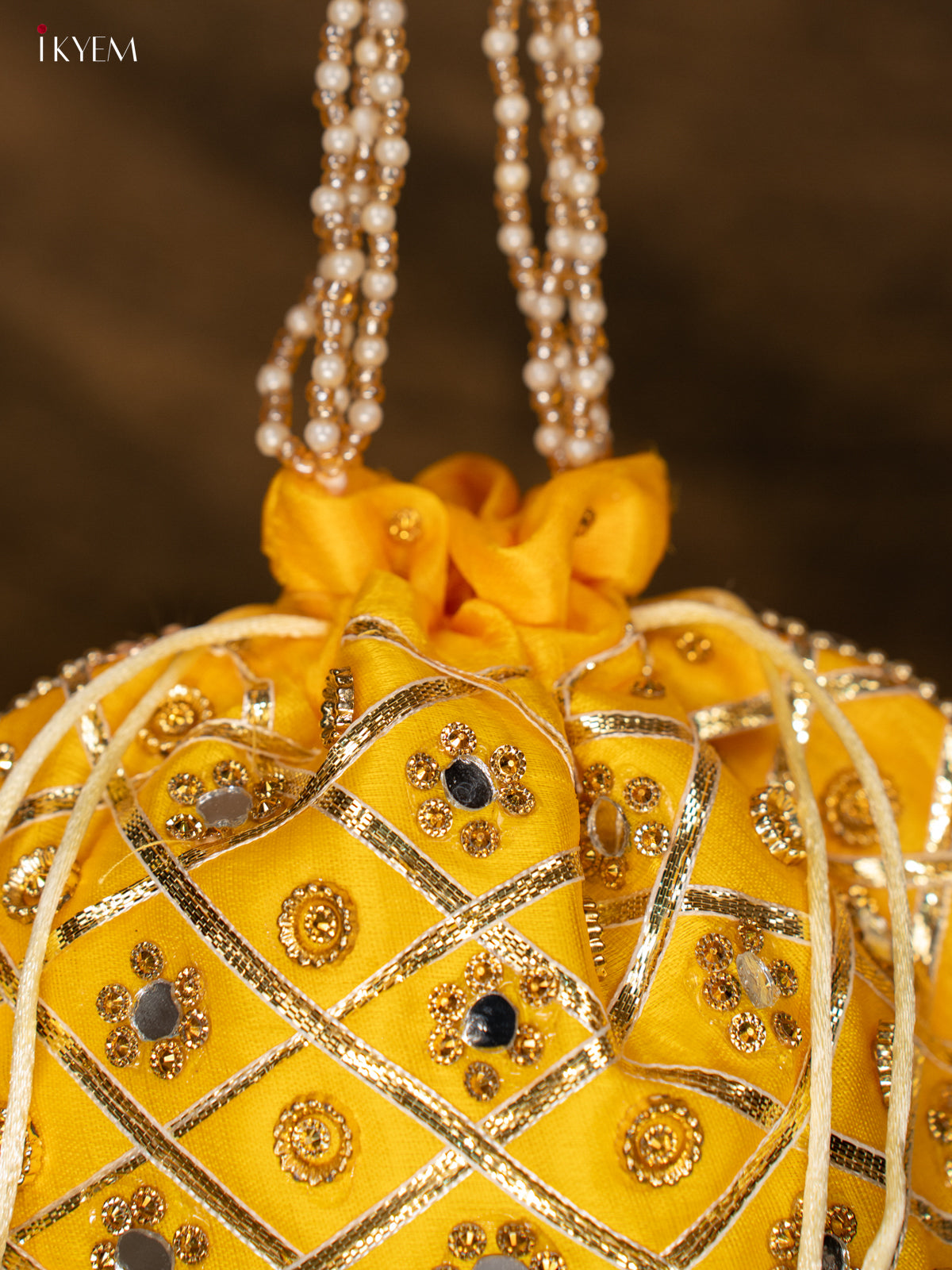 Designer Potli Bag with Mirror Work - Yellow - KA18156