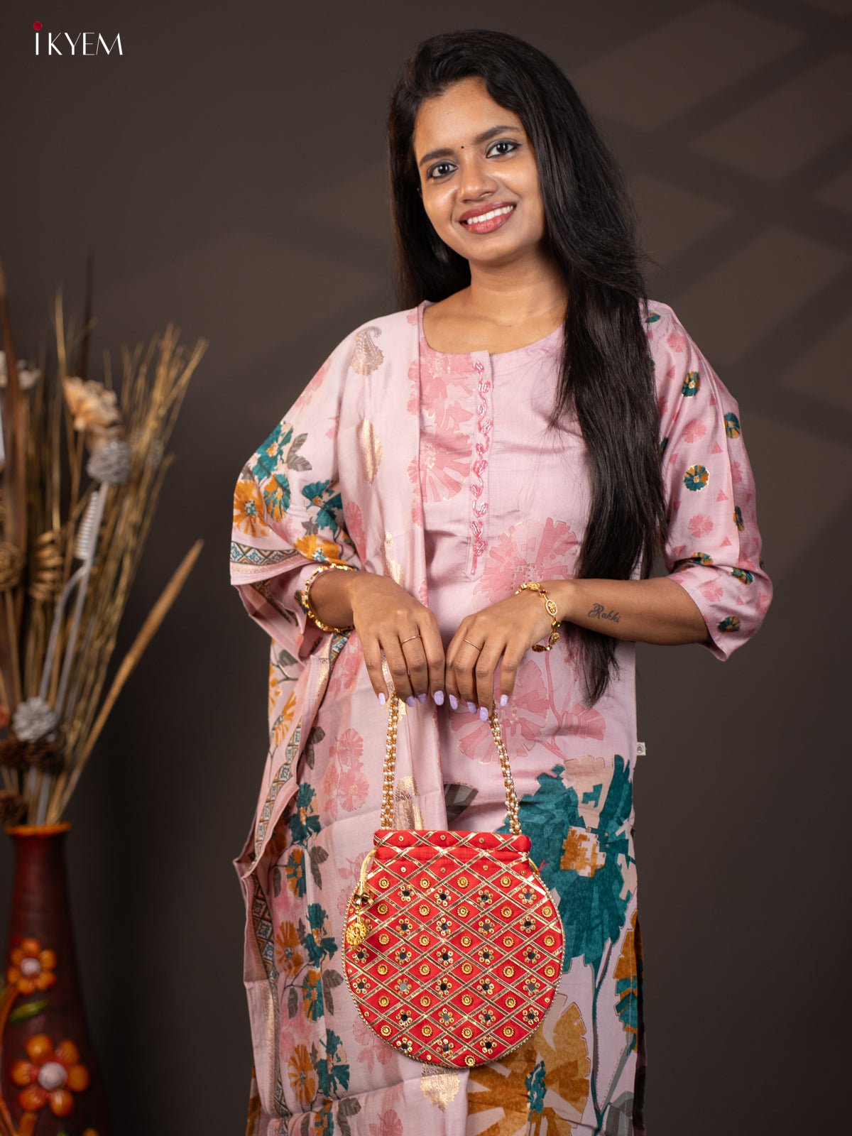 Designer Potli Bag with Mirror Work - Red - KA18159