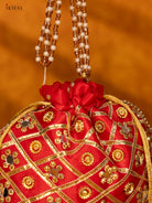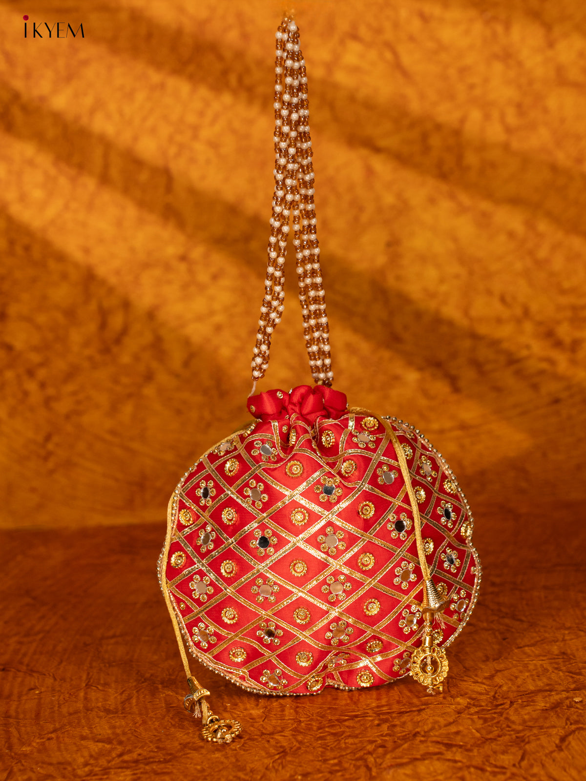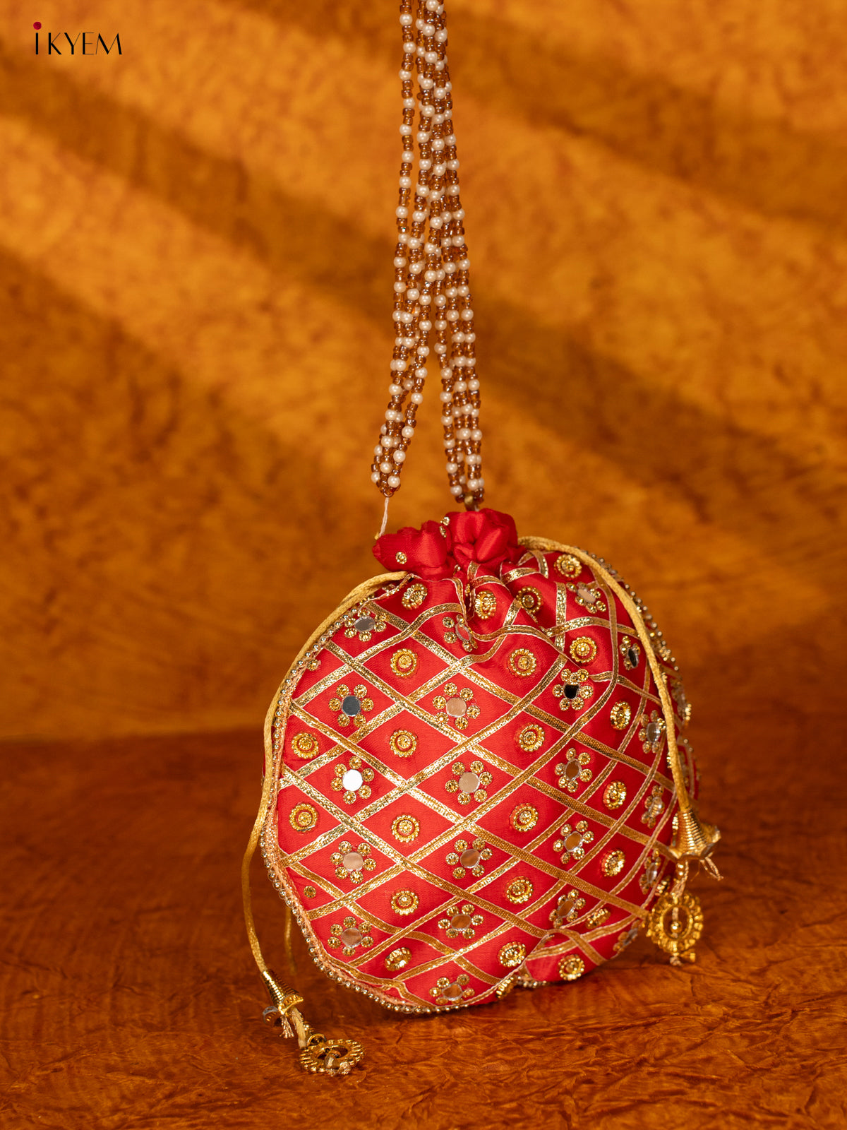 - This red Designer Potli Bag is the perfect accessory for any occasion.
