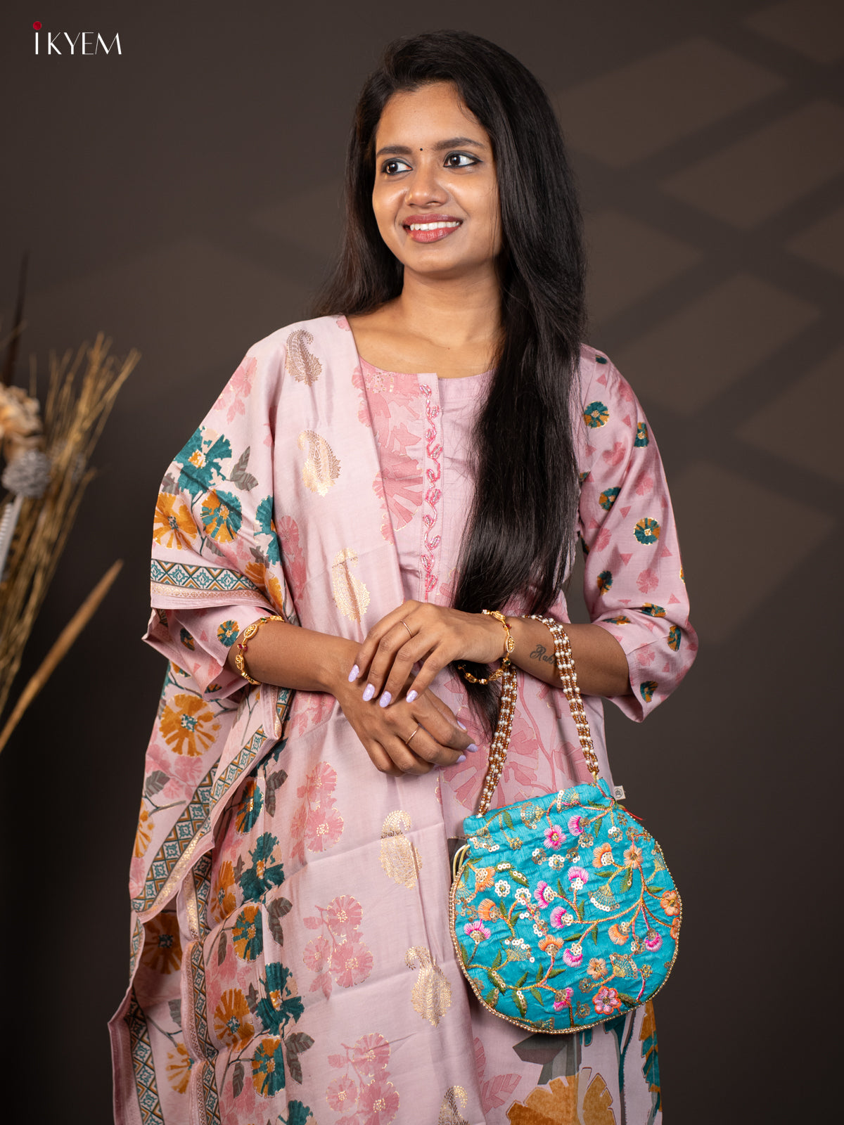 - Give the gift of elegance and charm with our Designer Floral Potli Bag.