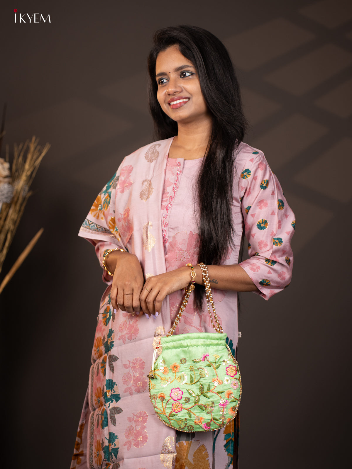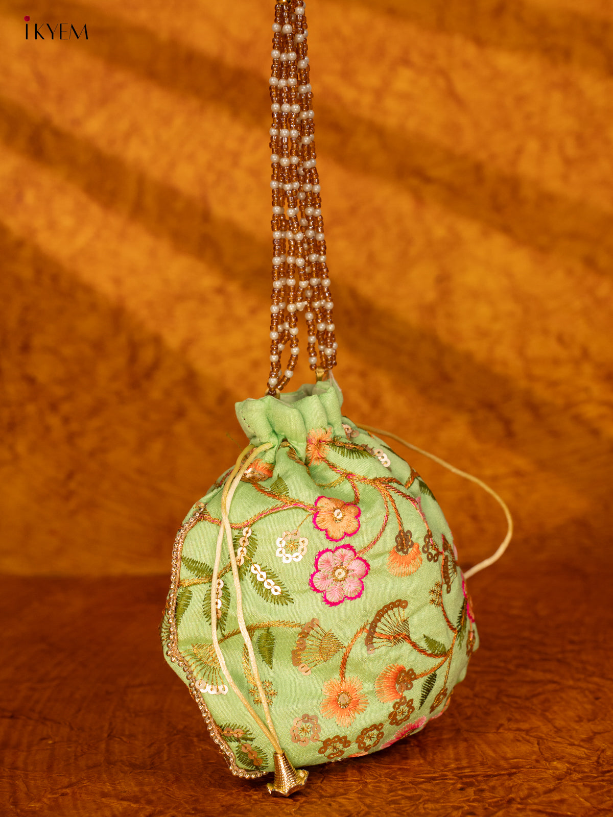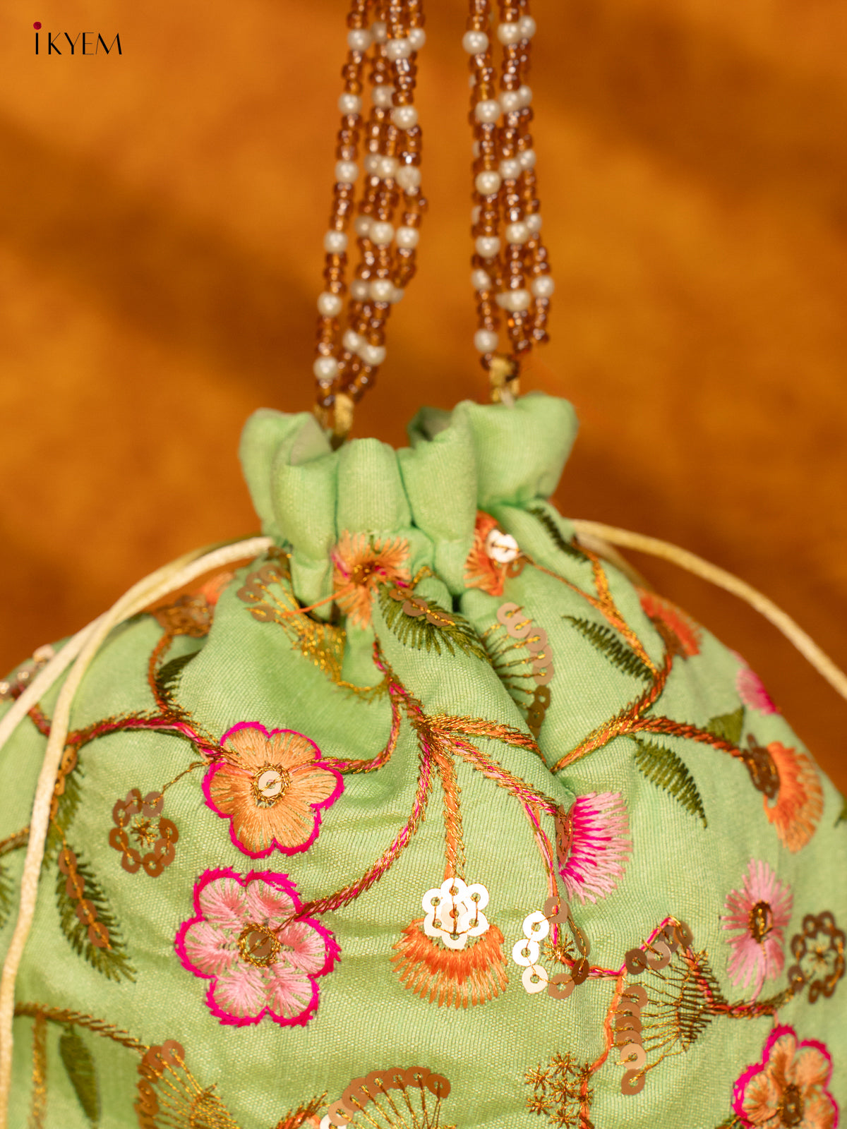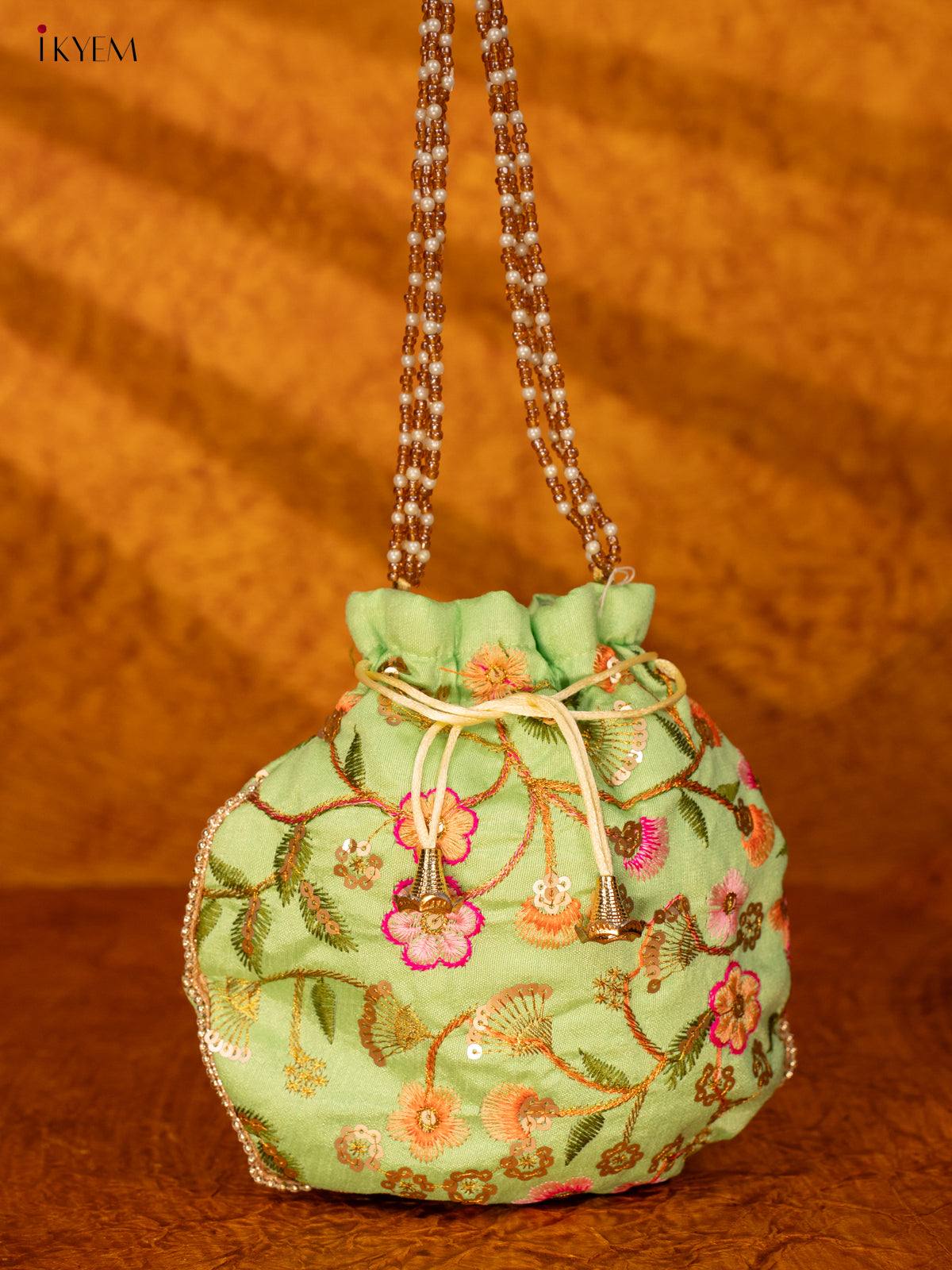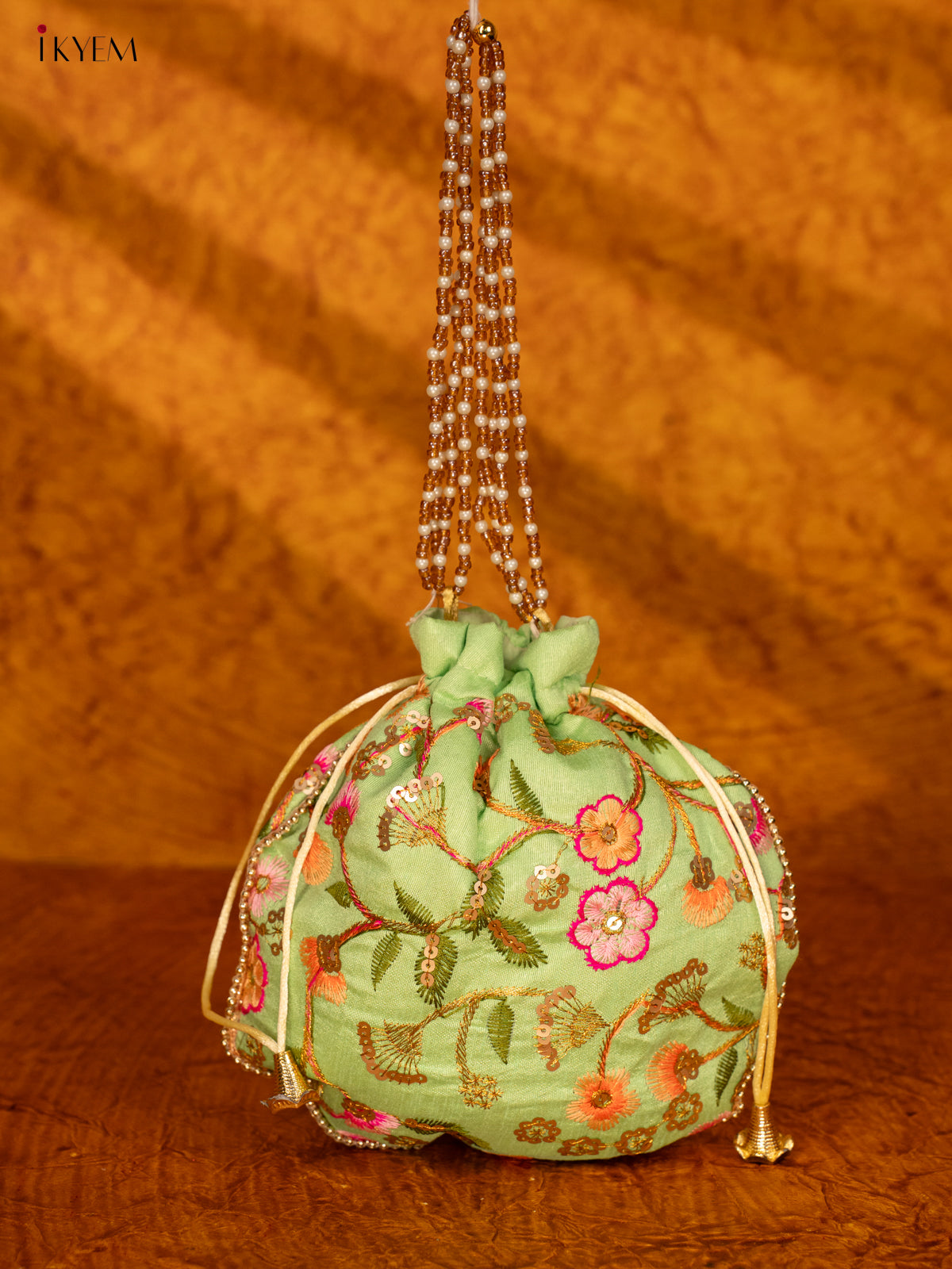 - Introducing our Designer Floral Potli Bag in stunning green, perfect as a return gift.