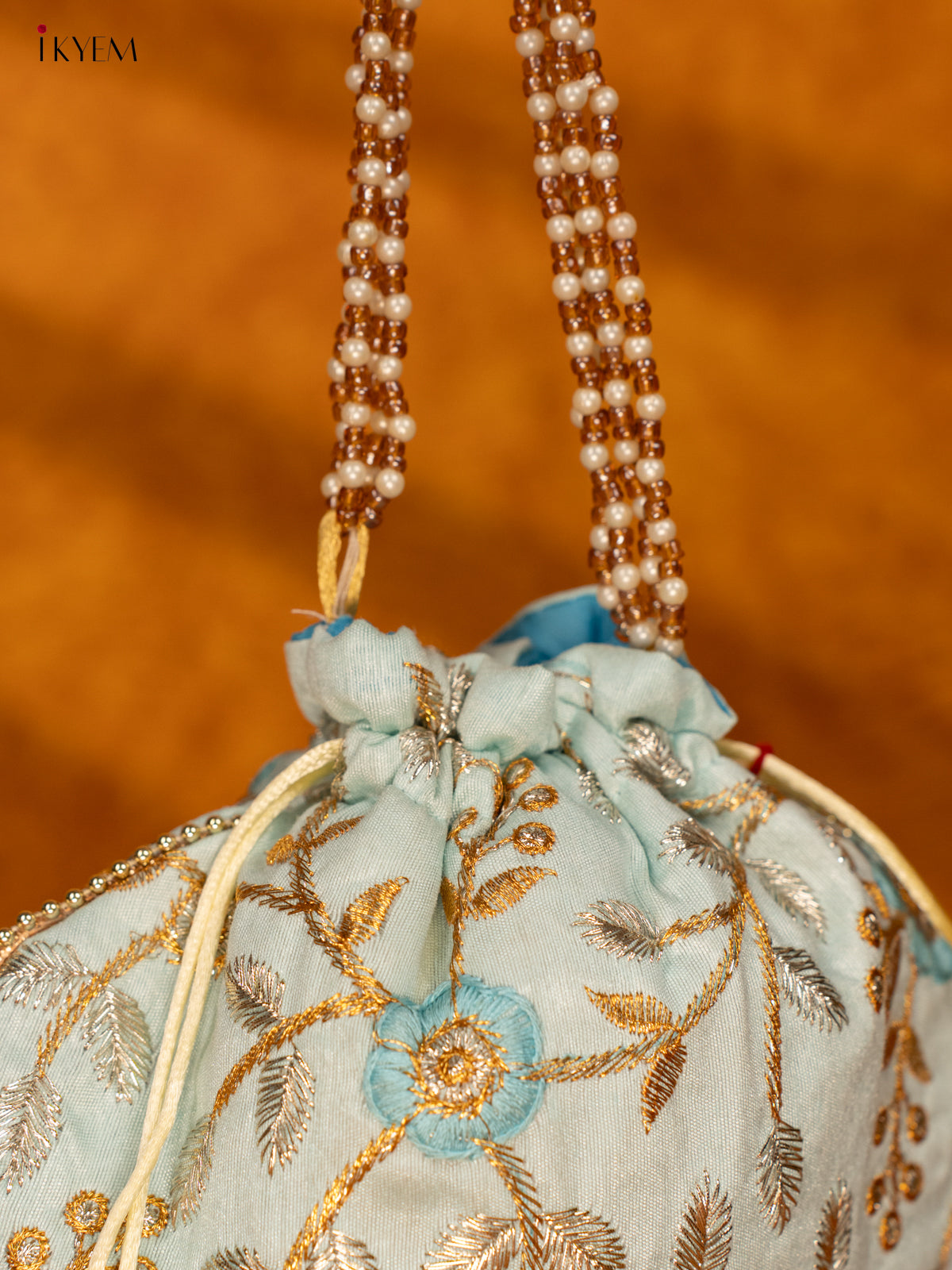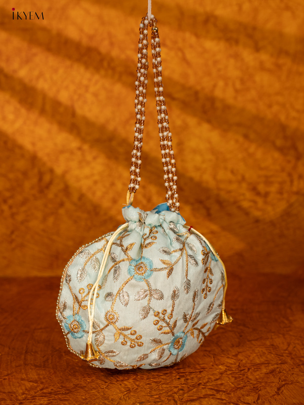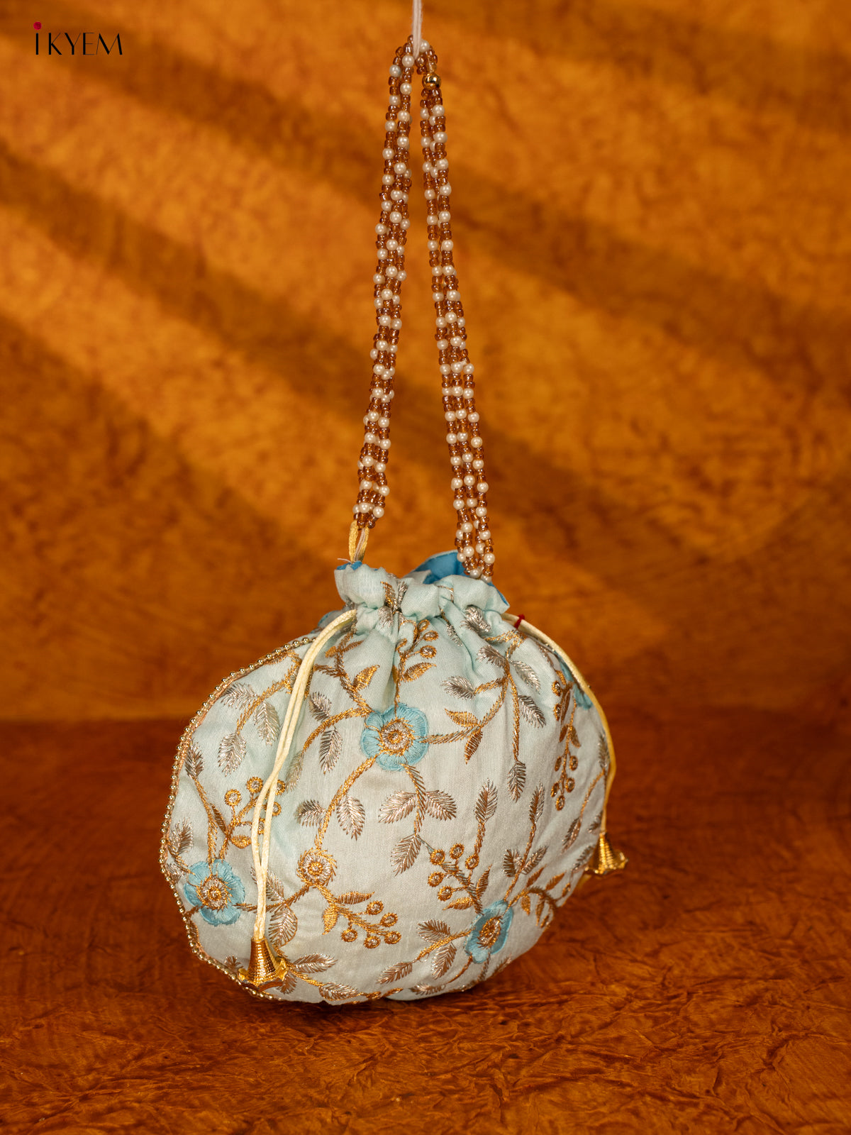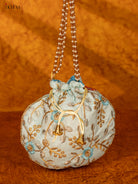 - Introduce a touch of elegance with our Designer Embroidered Potli Bag in Peach.