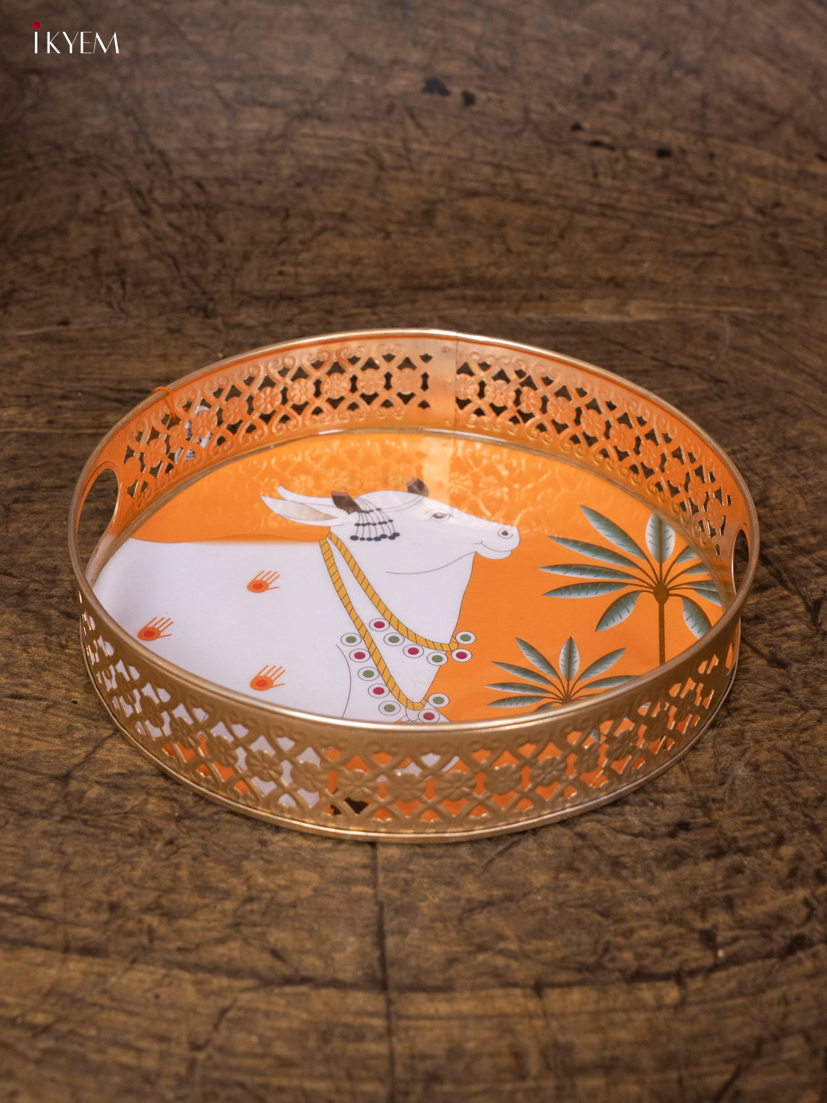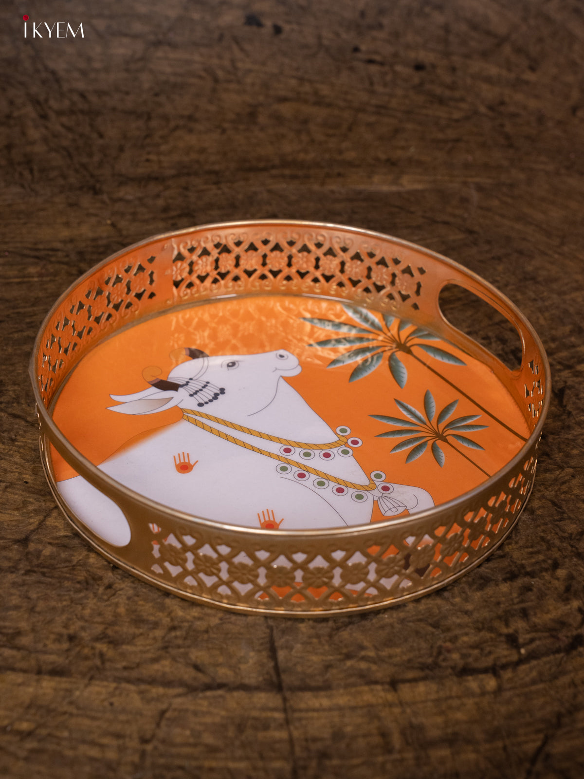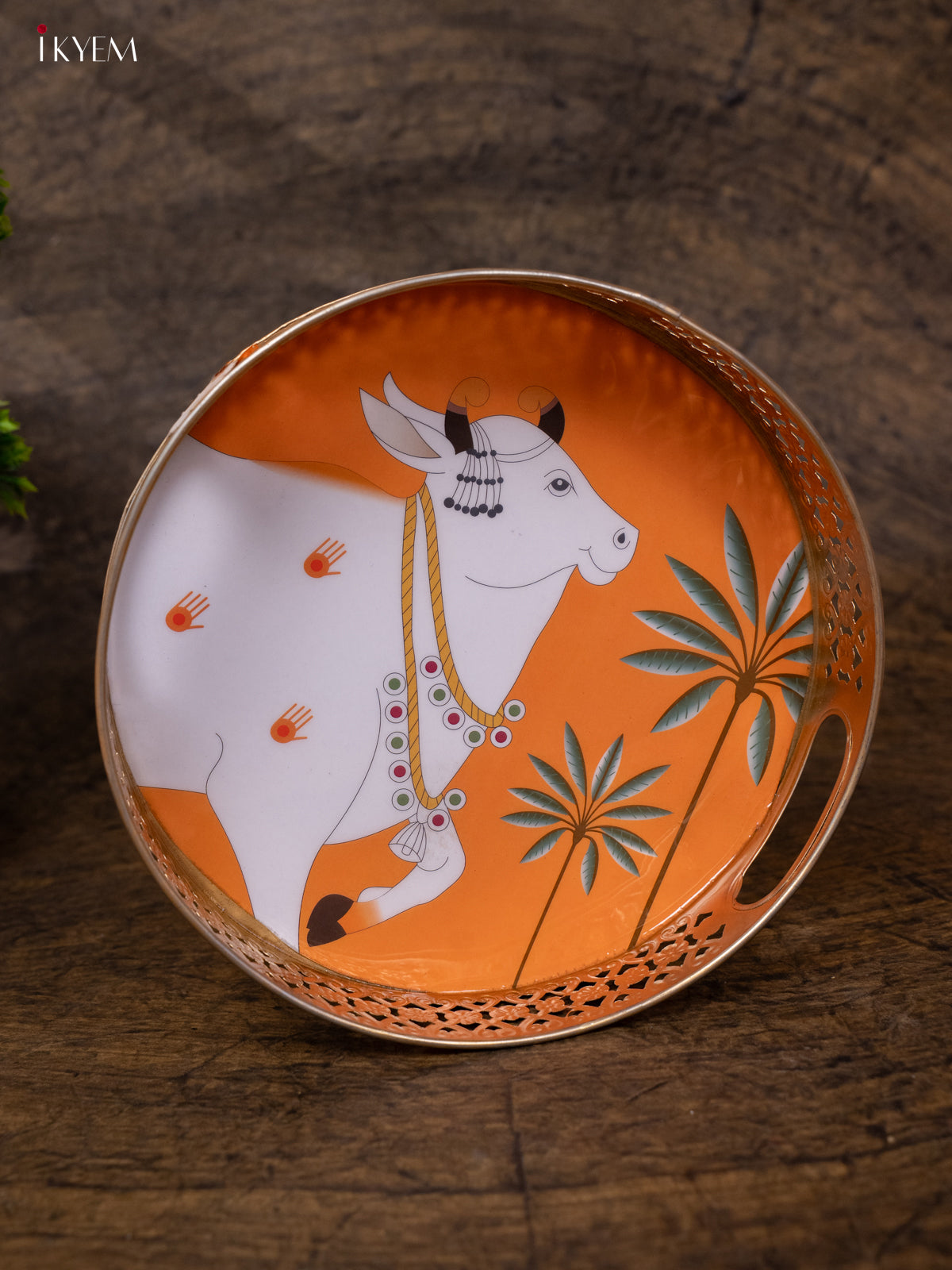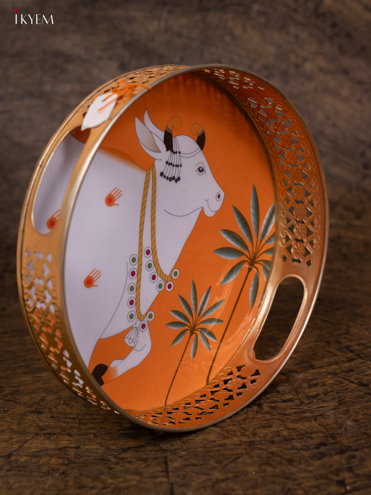 - Enhance your dining experience and impress your guests with our Digital Printed Pichwai Tray in stunning orange colour.