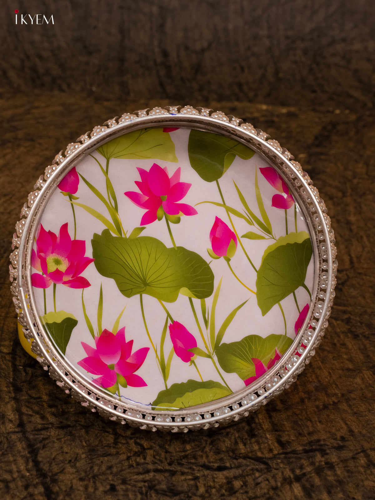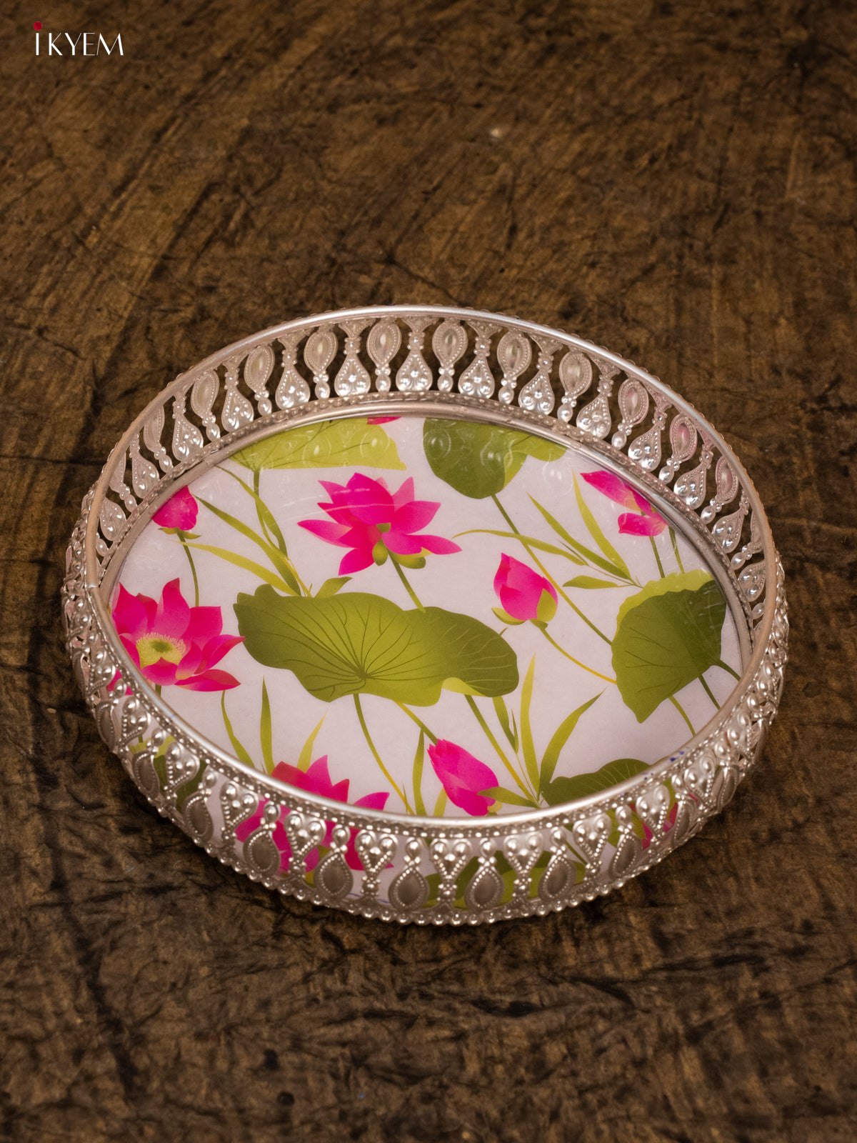 Digital Printed German Silver Tray - Pichwai Lotus - (8×8) - KA30139