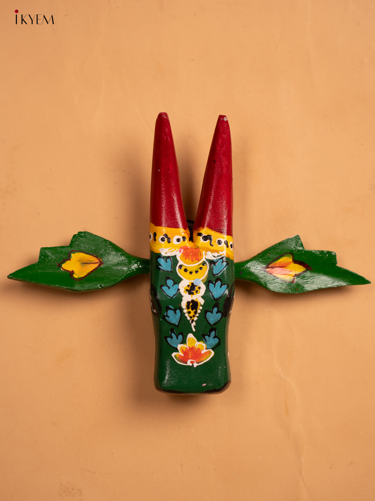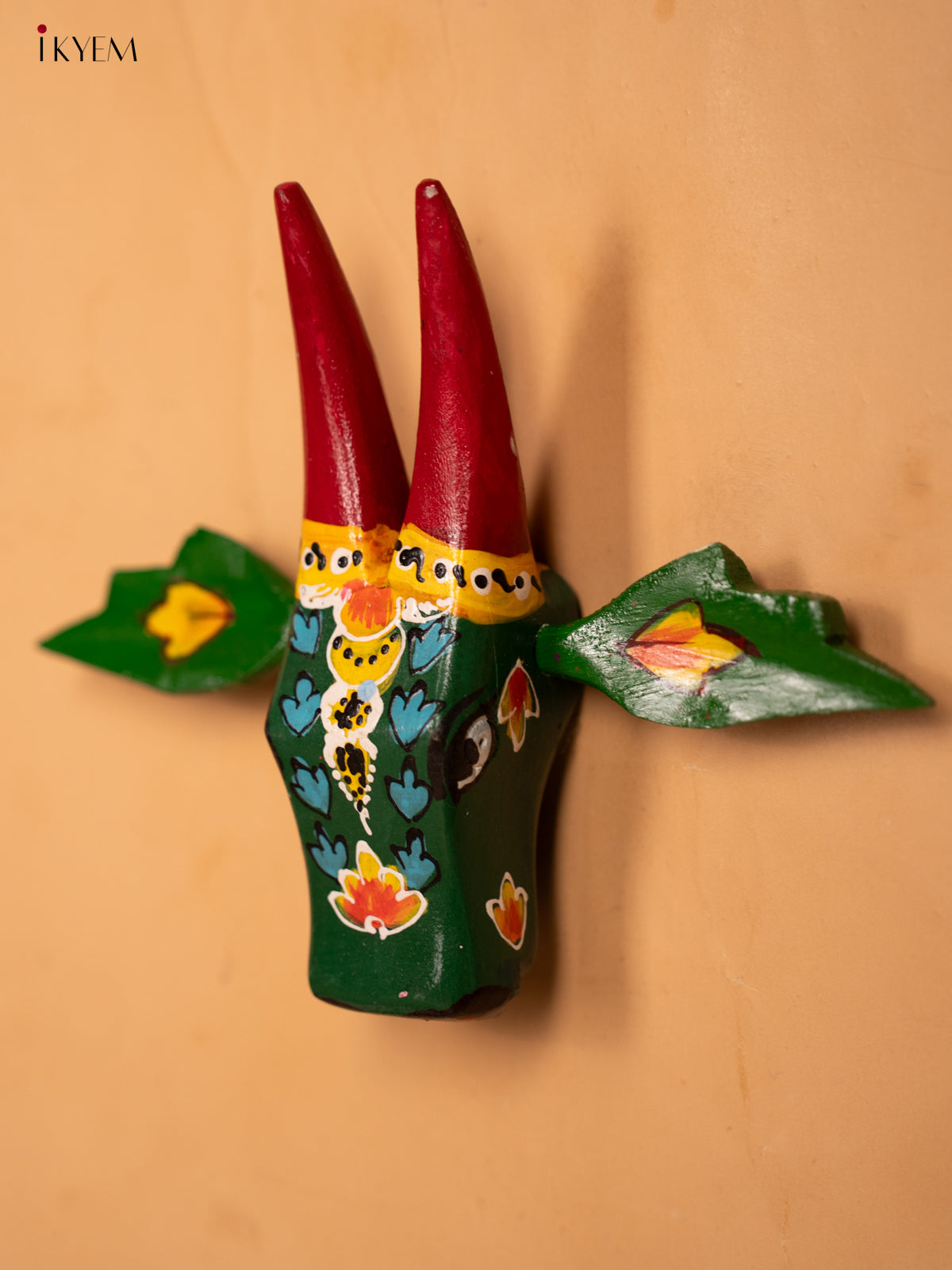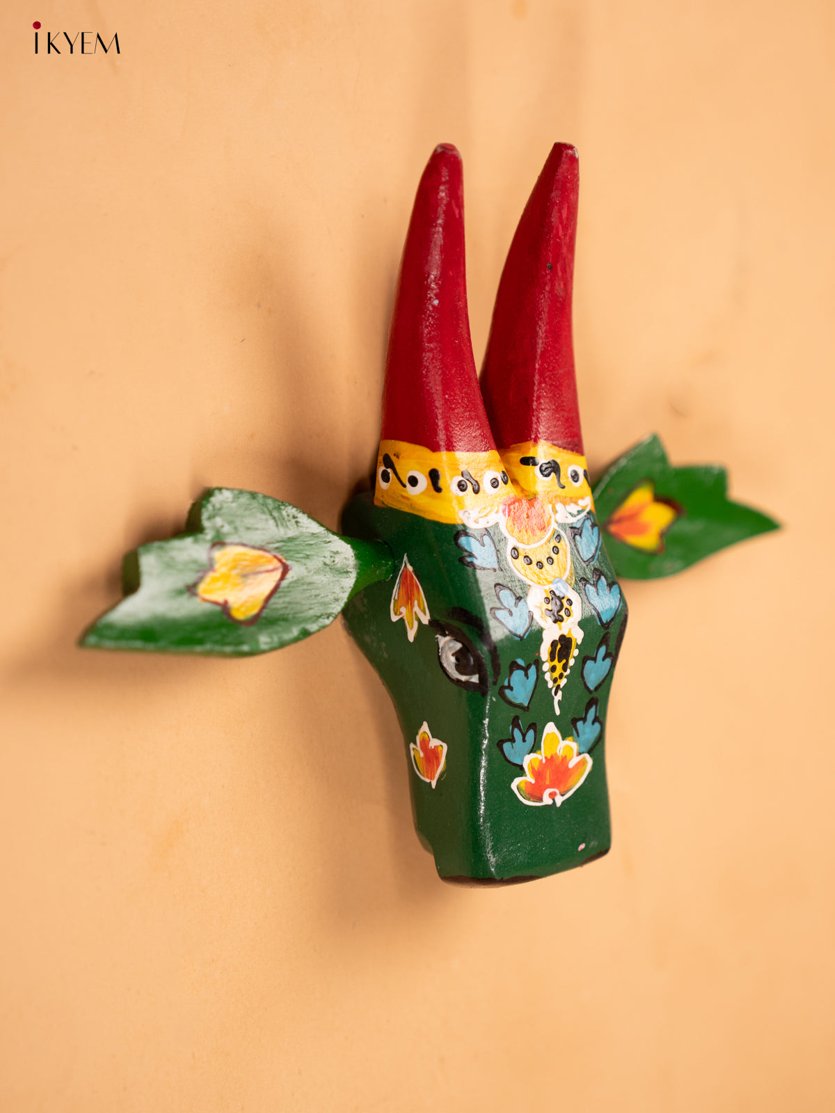 Hand Painted Wooden Cow Head - Green - 6inch - KA30145