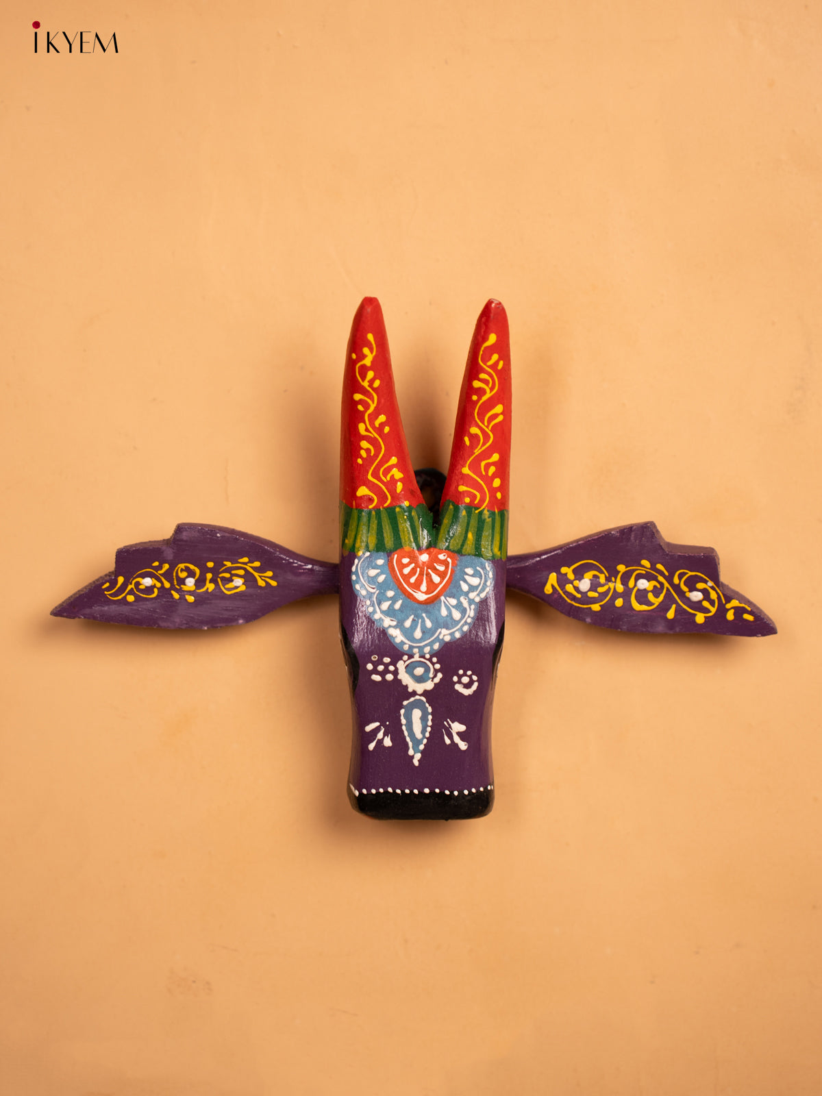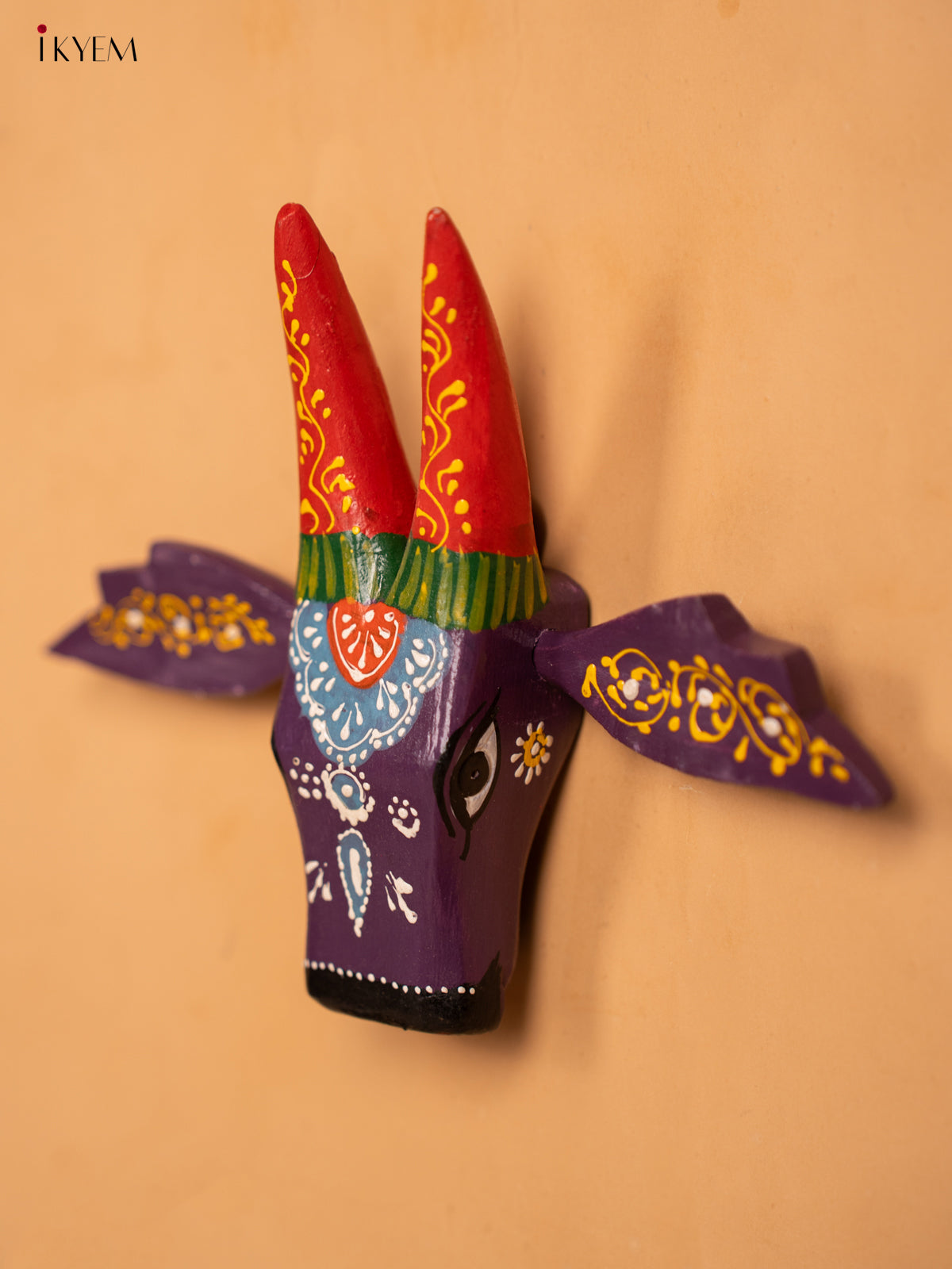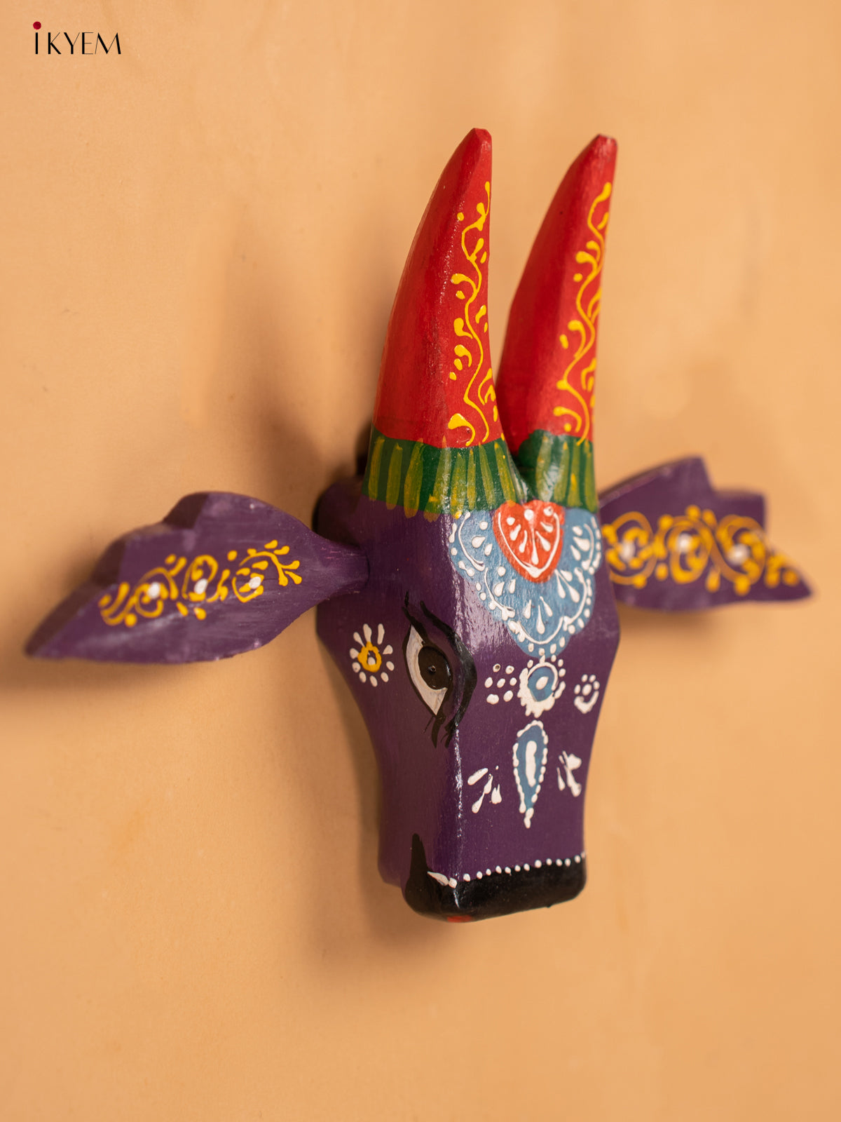 Hand Painted Wooden Cow Head - Violet - 6inch - KA30147