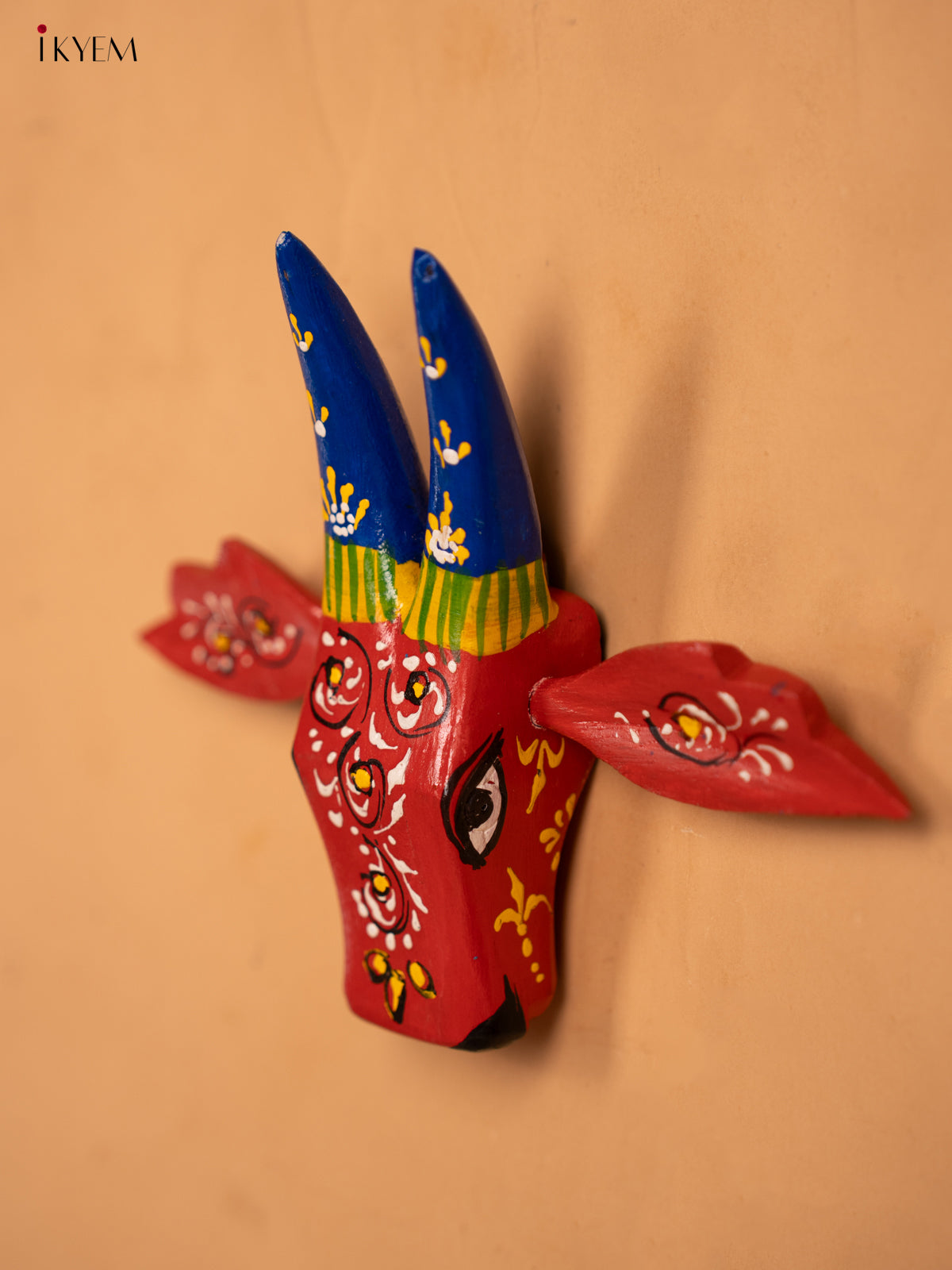 Hand Painted Wooden Cow Head - Orange - 6inch - KA30149