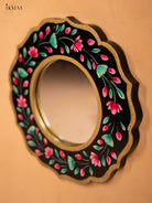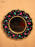 Wooden Hand Painted Round Mirror Frame - 11 inch - Black - KA30150