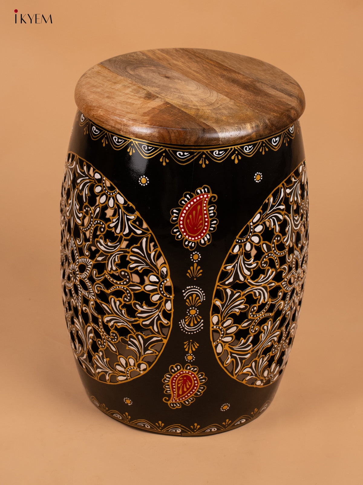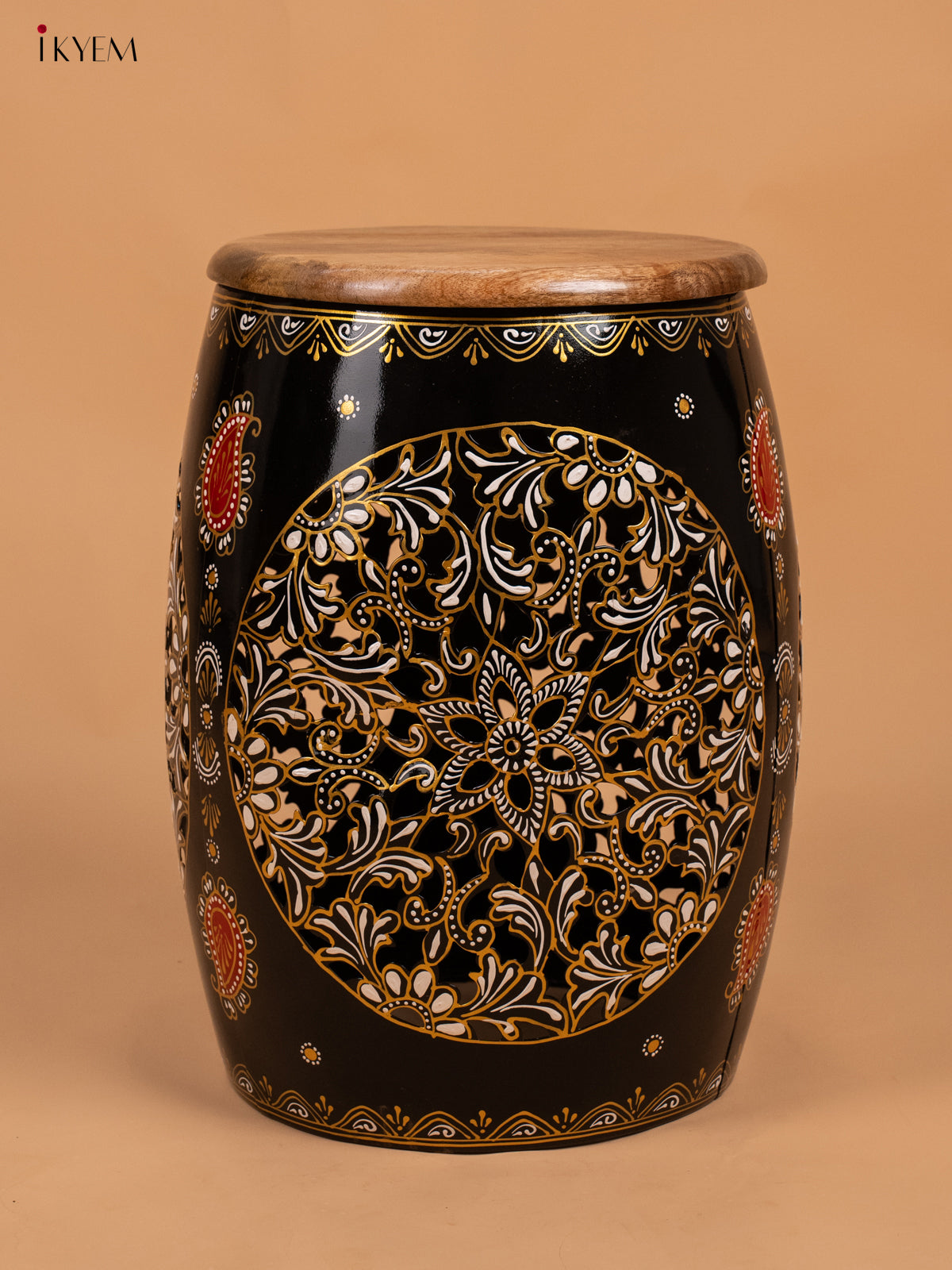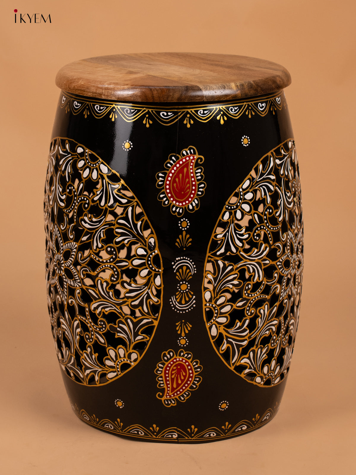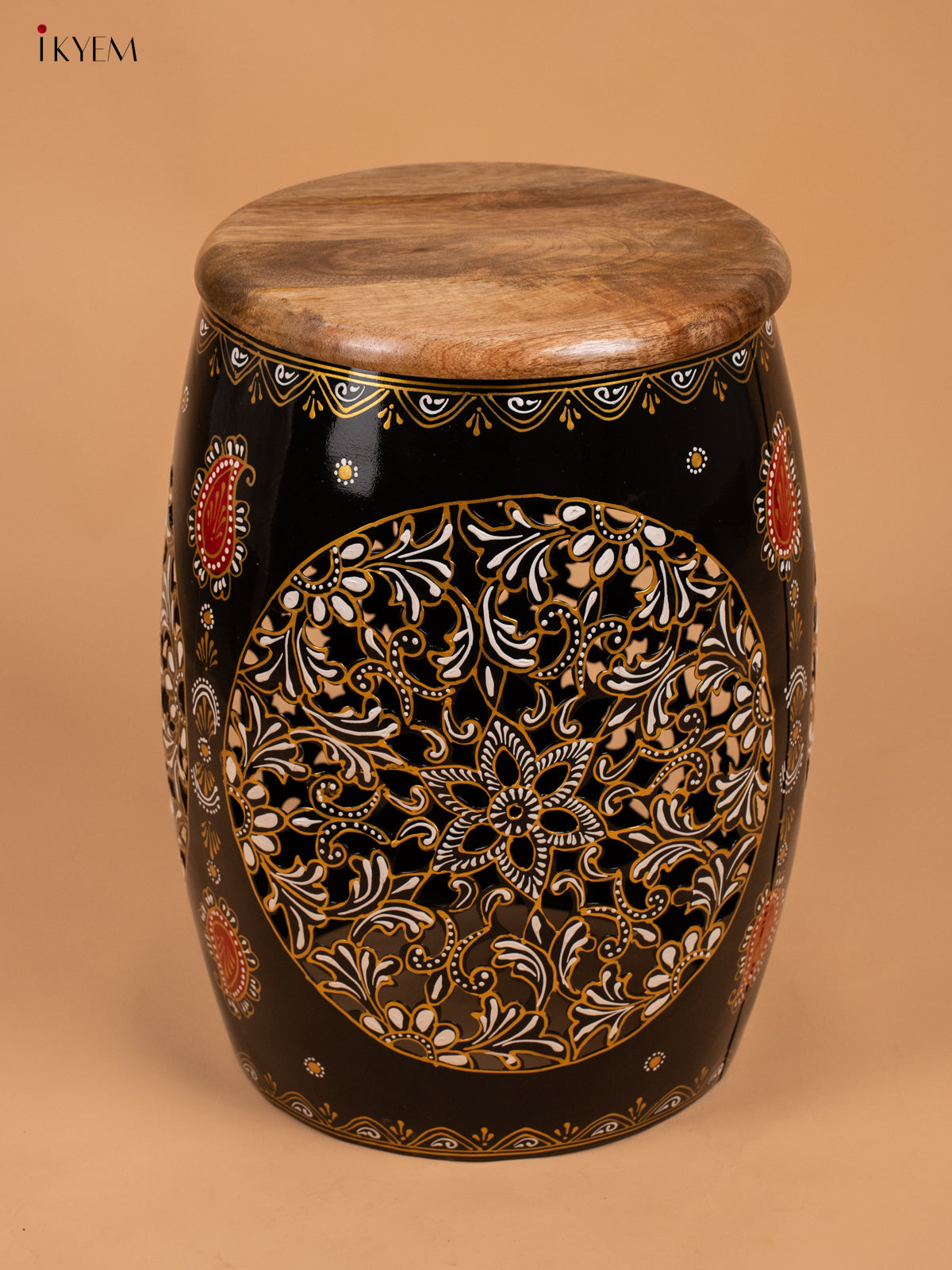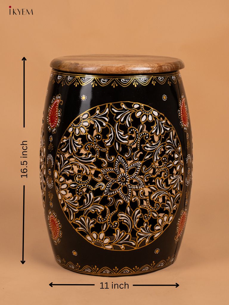 - Upgrade your home decor with our Hand Painted Metal Stool with Wooden Seater in Black.