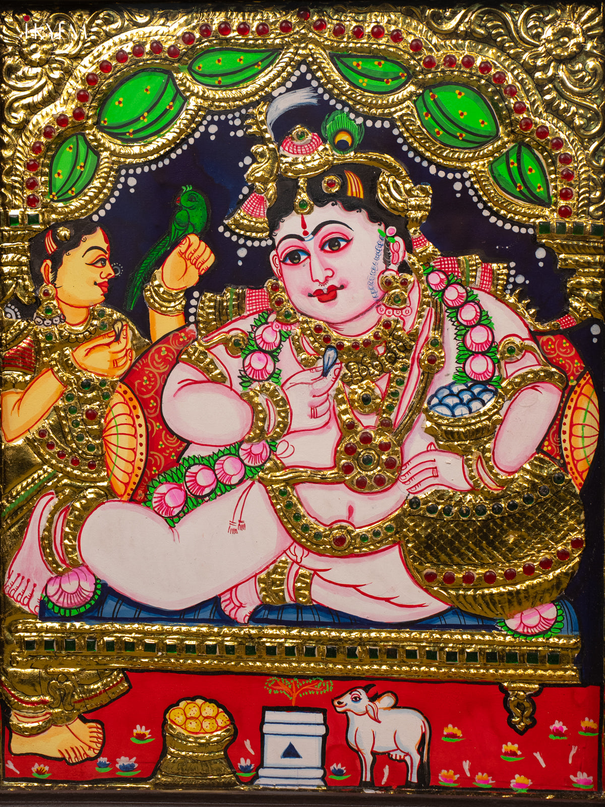 - Enhance the ambiance of your pooja room with our exquisite Baby Krishna - Tanjore Painting (18x15).