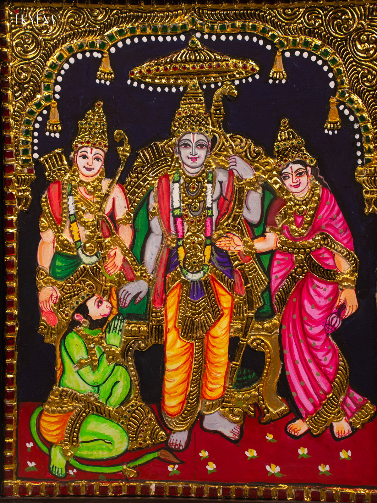- Enhance the ambiance of your pooja room with our exquisite Ramar Pattabhishekam -Tanjore Painting (18x15).