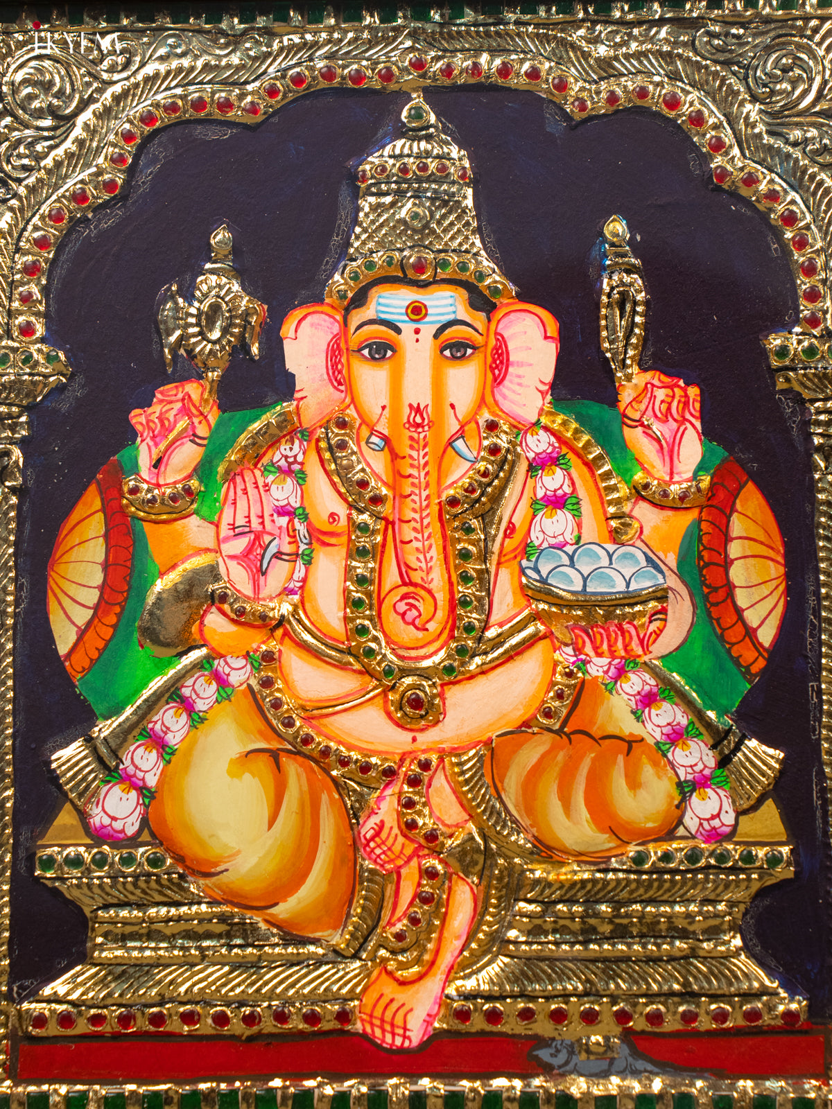 - Enhance the ambiance of your pooja room with our exquisite Ganesha - Tanjore Painting (15x13).