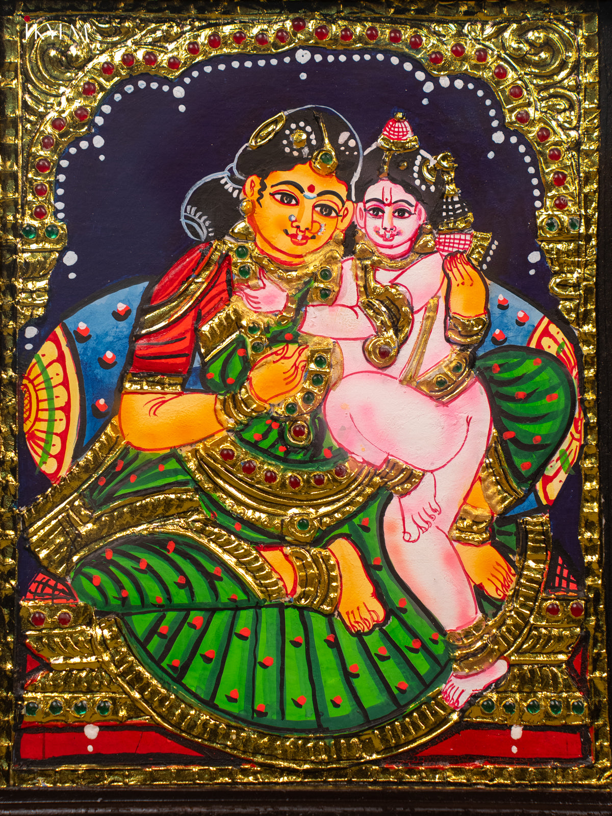 - Enhance the ambiance of your pooja room with our exquisite Yashoda Krishna - Tanjore Painting (13x11).