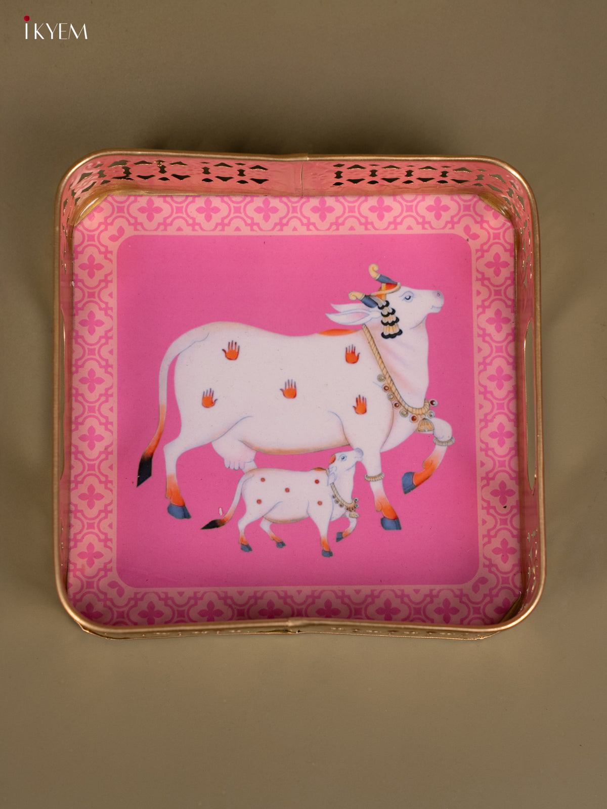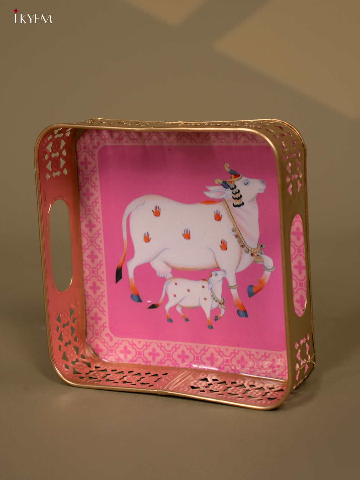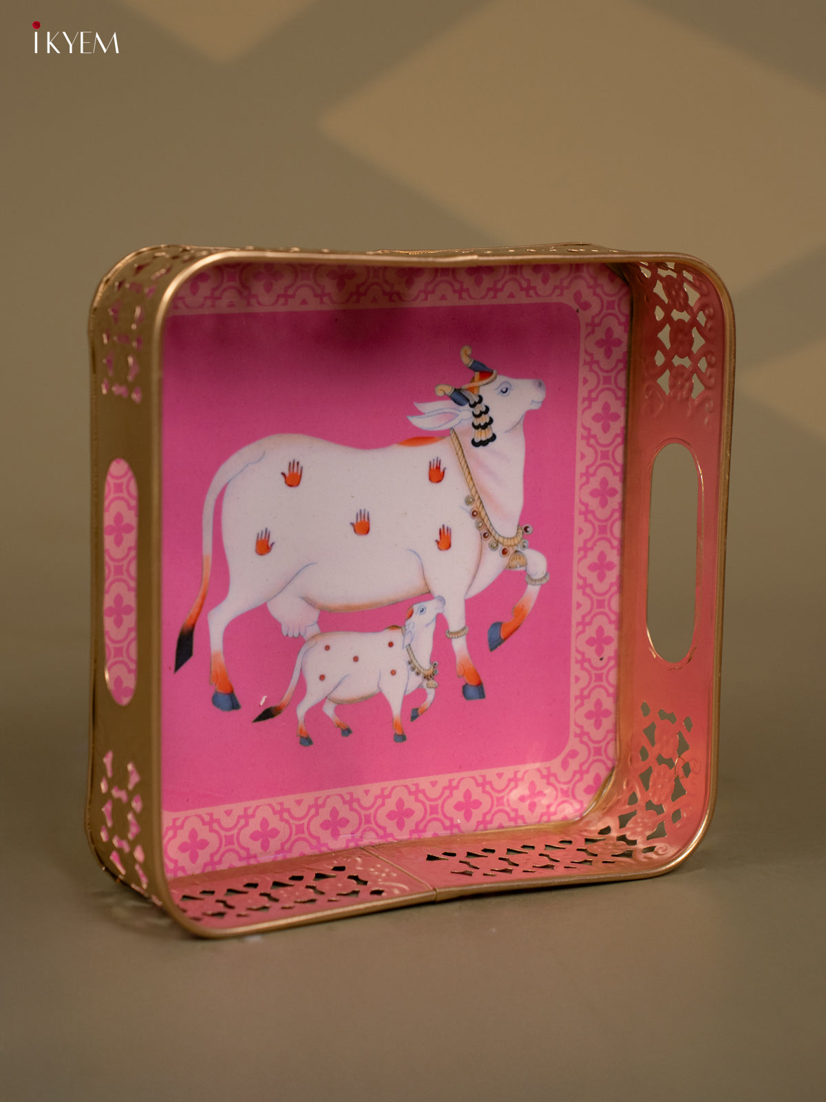 Digital Printed Pichwai Thambulam Tray - Square - (8×8) - KB11117