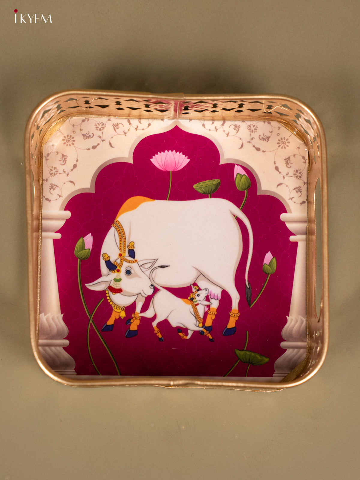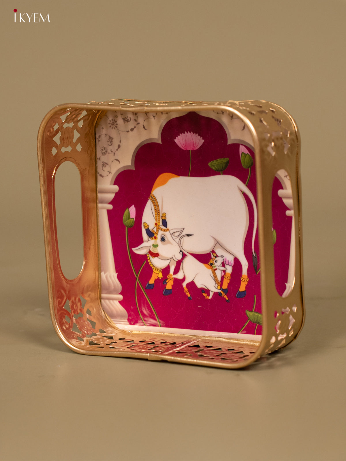 Digital Printed Pichwai Tray - Square 6 inch - KB11118