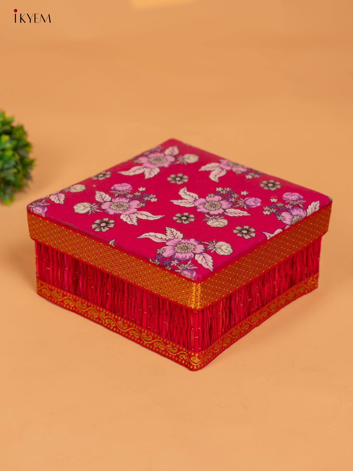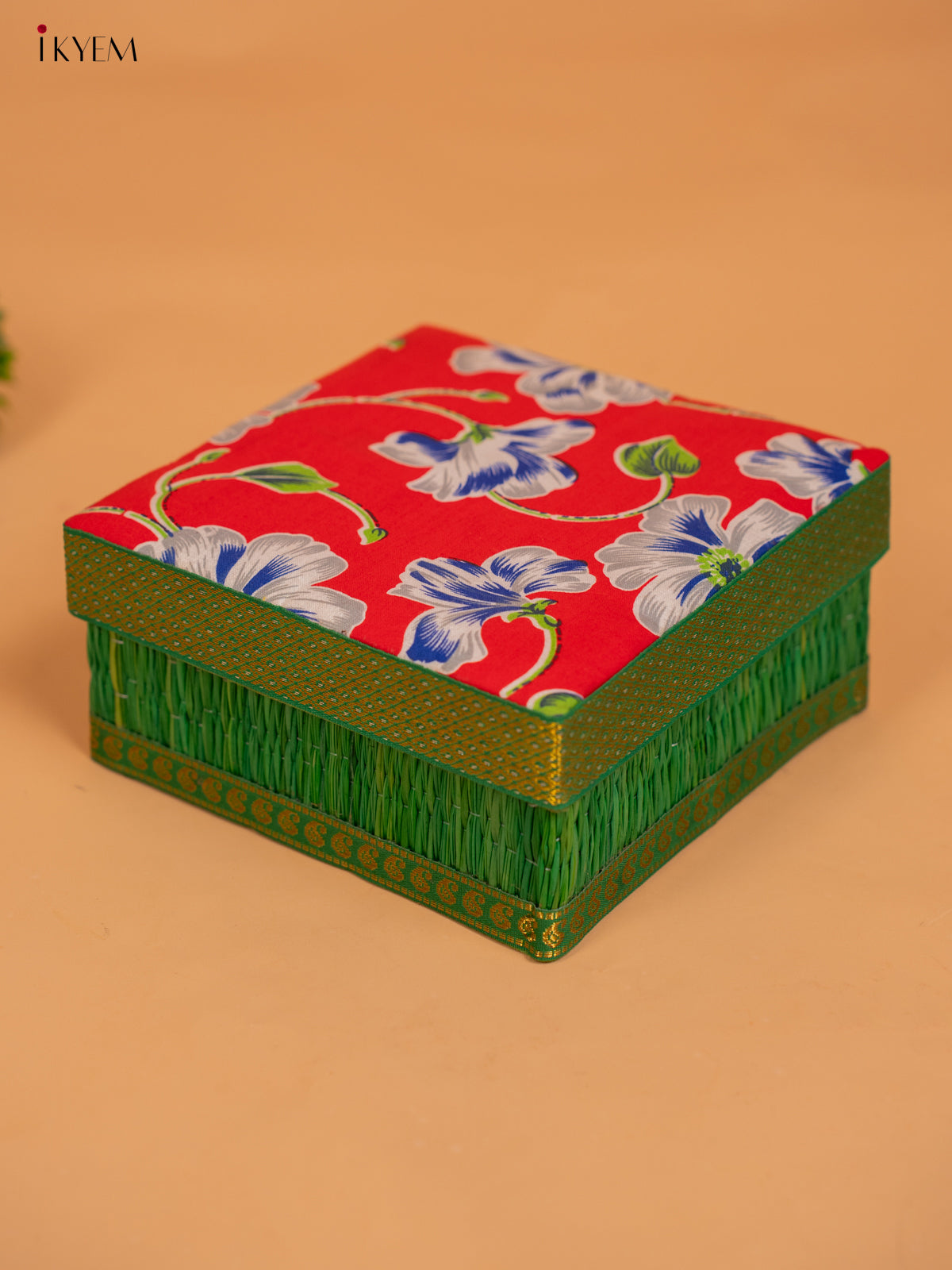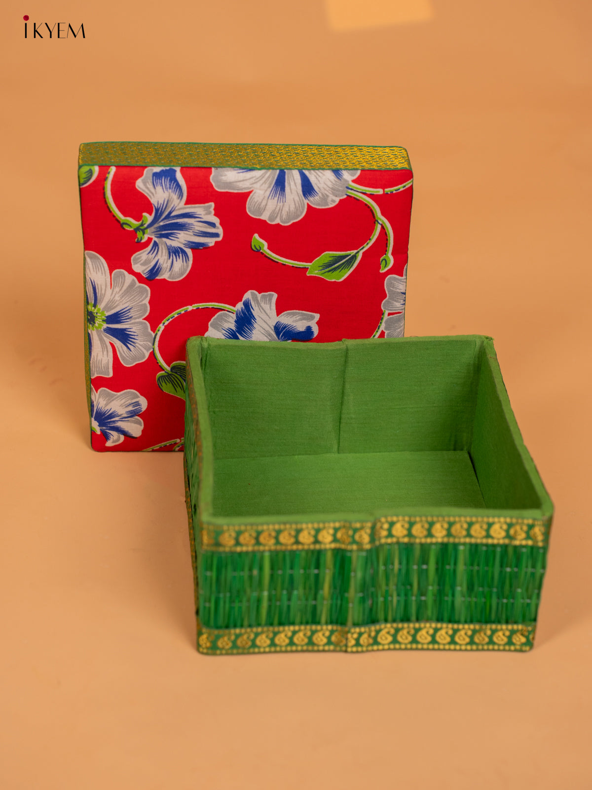 Foldable Korai Box with Kalamkari Fabric Top - Assorted Colours - KB11123