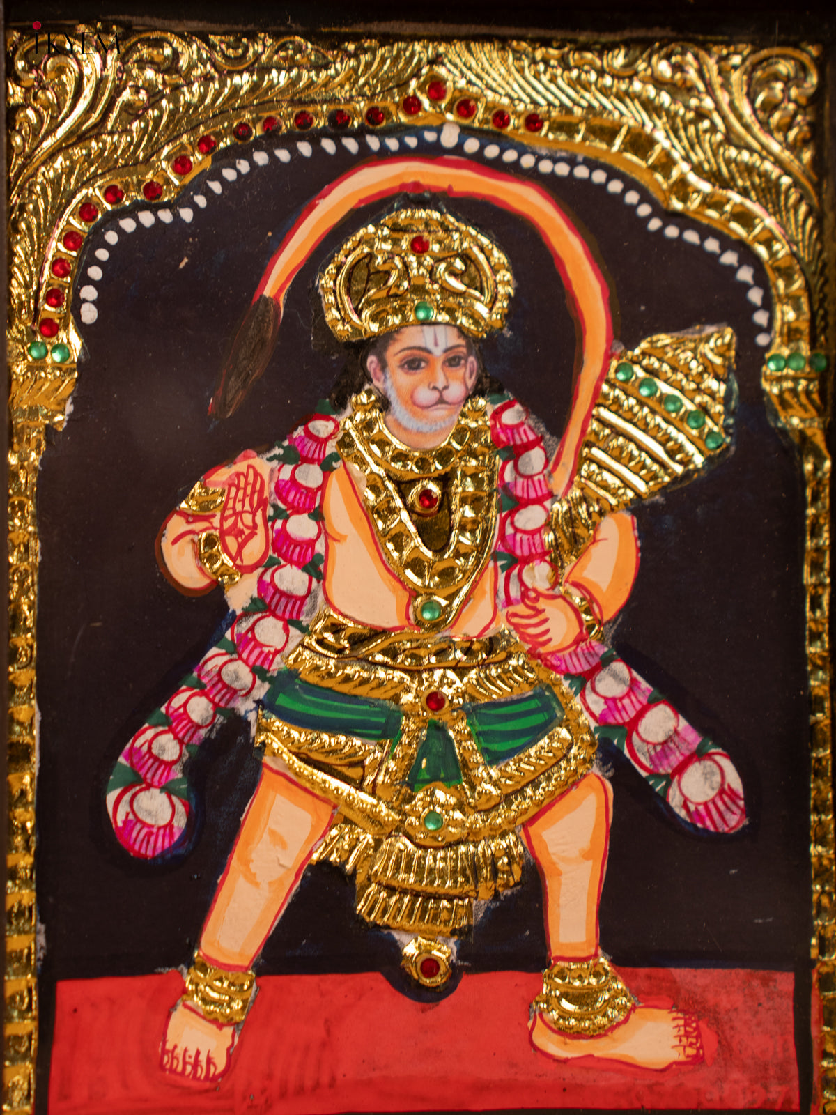 - This handcrafted Hanuman Tanjore painting is perfect for adding a traditional touch to your pooja room.