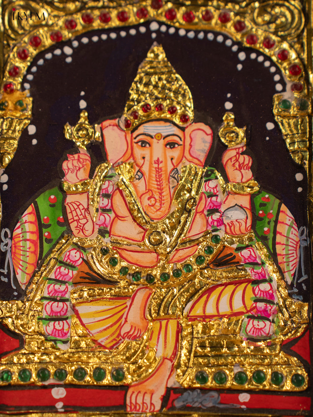 - This Ganesha-Tanjore painting adds a traditional touch to your pooja room.